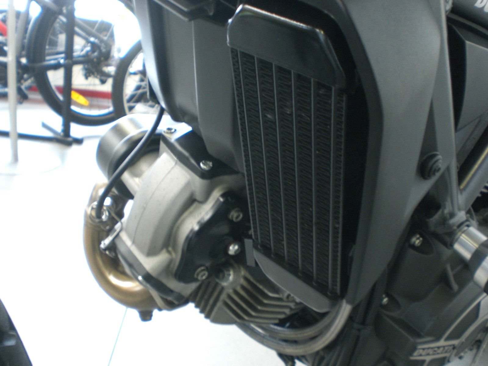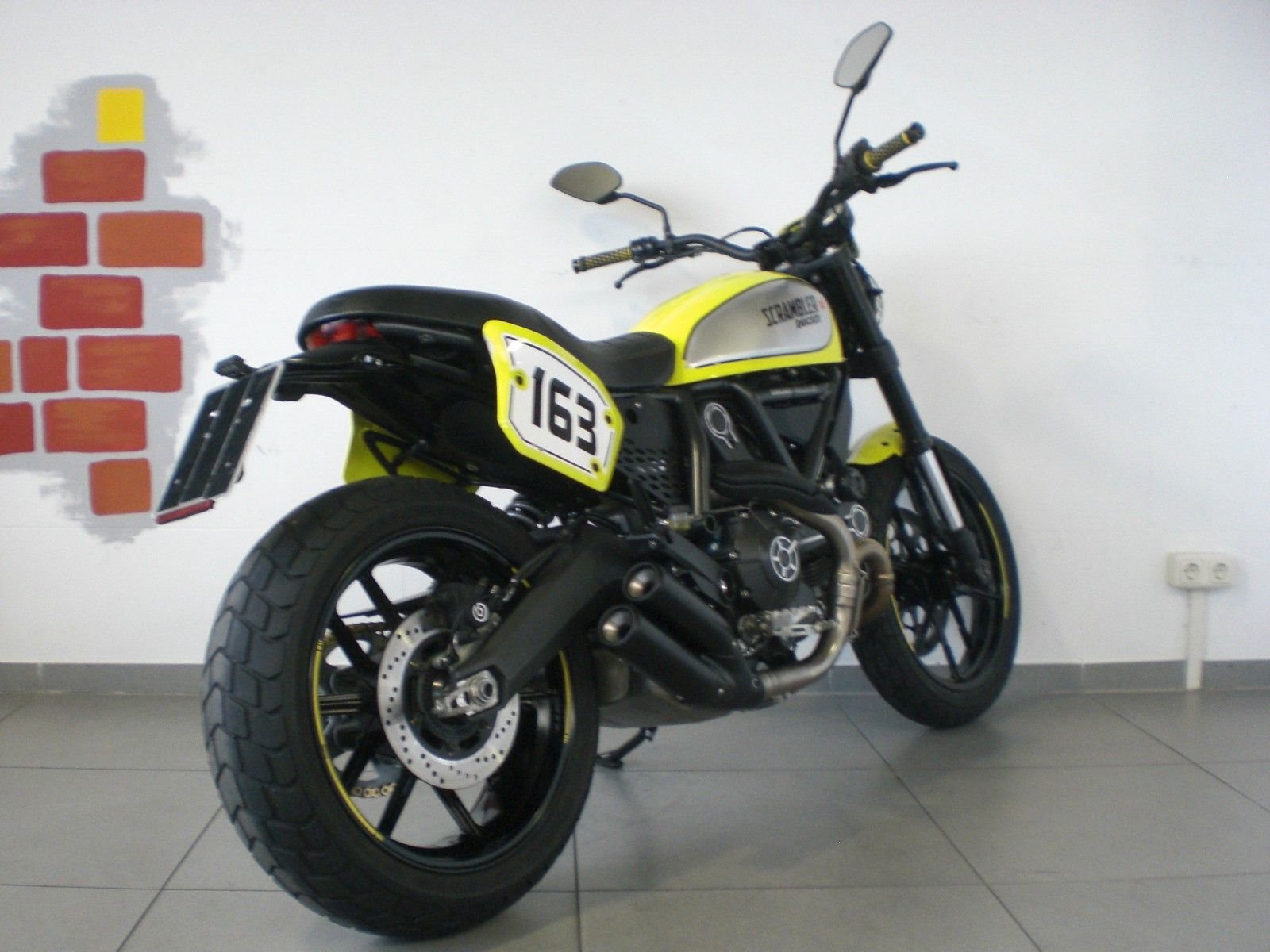 sehr gepflegte Flat Track aus 4.Hand, unfallfrei, ABS, Inspektion mit Ventilen und Riemen gerade durchgeführt, Kayaba Upside-Down Gabel, Kayaba Federbein hinten mit einstellbarer Federvorspannung, vielfach einstellbarer Handbremshebel, bequemer Superbike Lenker für noch bessere Fahrzeugkontrolle, Stahlflexleitungen rundum, neuer Vorderreifen, neuer Kettensatz, Brembo Radial Bremsanlage vorn, LCD Cockpit, LED Rücklicht, LED Standlichtring, Warnblinkerfunktion, elektronische Wegfahrsperre, Mini LED Blinker rundum, Safety Pads von GSG, 2-farbige Griffgummis, kleines Windschild, seitliche Nummerntafeln, Ölkühler, Edelstahl Krümmeranlage, schwarzer Termignoni Auspuff, Performance Scheinwerfergitter, Sitzbank mit gelben Steppnähten, Performance Alu Ritzelabdeckung, Performance Alu Fussrasten, Performance Alu Bremspumpendeckel, hochgelegter Kennzeichenträger von EvoTech, USB Anschluß unter der Sitzbank, 173kg trocken -> 189kg fahrfertig, 13,5 Liter Tankvolumen,