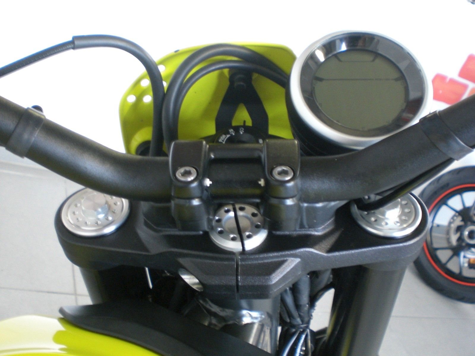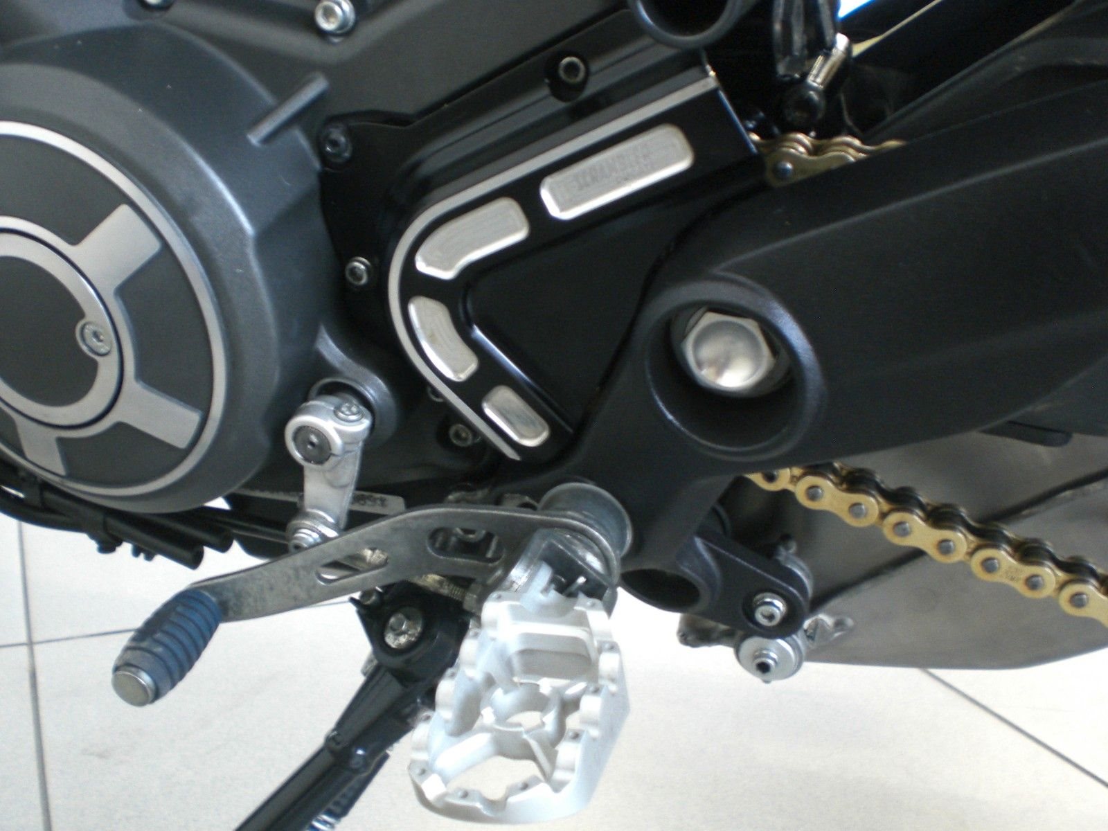 sehr gepflegte Flat Track aus 4.Hand, unfallfrei, ABS, Inspektion mit Ventilen und Riemen gerade durchgeführt, Kayaba Upside-Down Gabel, Kayaba Federbein hinten mit einstellbarer Federvorspannung, vielfach einstellbarer Handbremshebel, bequemer Superbike Lenker für noch bessere Fahrzeugkontrolle, Stahlflexleitungen rundum, neuer Vorderreifen, neuer Kettensatz, Brembo Radial Bremsanlage vorn, LCD Cockpit, LED Rücklicht, LED Standlichtring, Warnblinkerfunktion, elektronische Wegfahrsperre, Mini LED Blinker rundum, Safety Pads von GSG, 2-farbige Griffgummis, kleines Windschild, seitliche Nummerntafeln, Ölkühler, Edelstahl Krümmeranlage, schwarzer Termignoni Auspuff, Performance Scheinwerfergitter, Sitzbank mit gelben Steppnähten, Performance Alu Ritzelabdeckung, Performance Alu Fussrasten, Performance Alu Bremspumpendeckel, hochgelegter Kennzeichenträger von EvoTech, USB Anschluß unter der Sitzbank, 173kg trocken -> 189kg fahrfertig, 13,5 Liter Tankvolumen,
