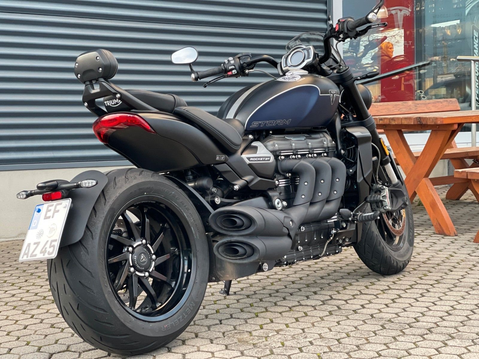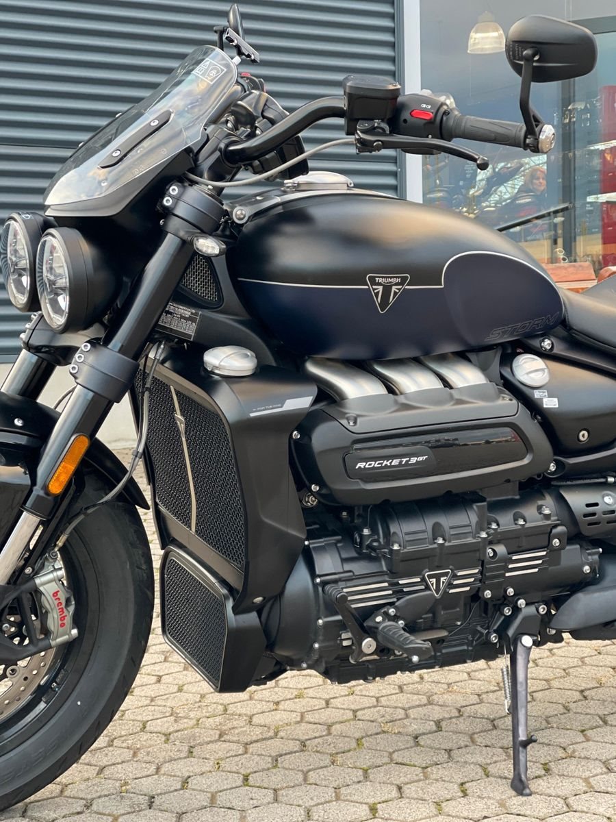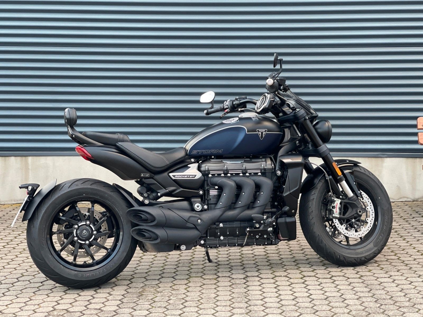 Seit ihrer Markteinführung im Jahr 2004 ist die legendäre Rocket 3 mit ihrer muskulösen Ausstrahlung, ihrer beeindruckenden Präsenz und dem größten serienmäßigen Motorradmotor der Welt eine Klasse für sich. Die Rocket 3 Storm bietet jetzt noch mehr Ausstrahlung mit einem neuen komplett schwarzen Design, mehr Leistung und noch mehr Drehmoment aus dem 2.458 cm Dreizylindermotor und setzt damit in jeder Hinsicht neue Maßstäbe.Über zwei Jahrzehnte wurde jeder Aspekt der Rocket 3 Storm weiterentwickelt und verbessert, um sie zum ultimativen Bike zu machen. Mehr Leistung, besseres Handling und eine unwiderstehliche Optik. Aber vor allem: maximaler Fahrspaß.Die Rocket 3 Storm ist der ultimative Power-Roadster mit einer Ausstattung, die keine Wünsche offen lässt und mit den besten Komponenten und der besten fahrerorientierten Technik ausgestattet ist, um aus jeder Fahrt das Beste herauszuholen - ergänzt durch eine große Auswahl an Originalzubehör für Ihr persönliches Traumbike.
