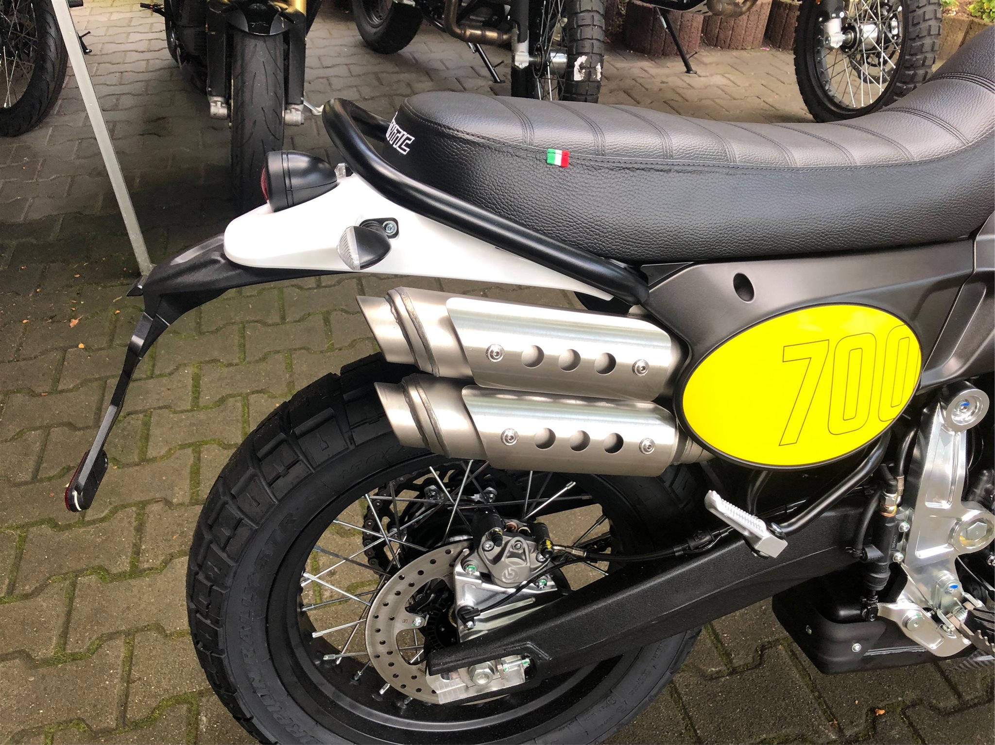 Die Caballero 700 ist mit einem hochmodernen Elektronikpaket ausgestattet. Sie ist der erste Scrambler weltweit mit einem kultigen runden 3,5-Zoll-TFT-Display mit integriertem Bluetooth zum Telefonieren und für Media-Anwendungen.