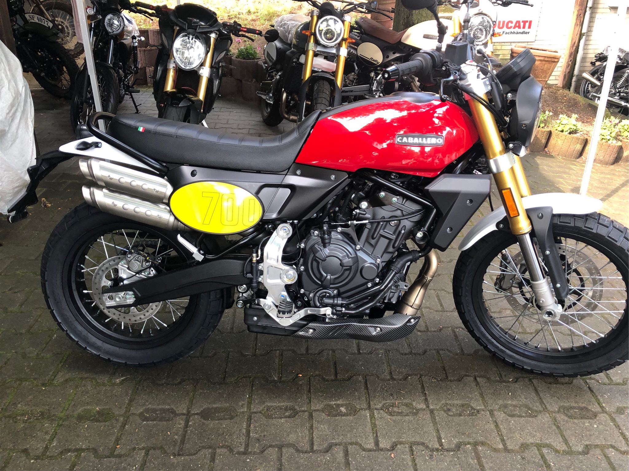 Fantic Caballero 700 Scrambler in der Farbe rot (Rosso) bei Bestellung vom 06.12.25-24.12.25 zum Weihnachtspreis 8990,-€ statt 9385,-€ inkl. Liefernebenkosten !