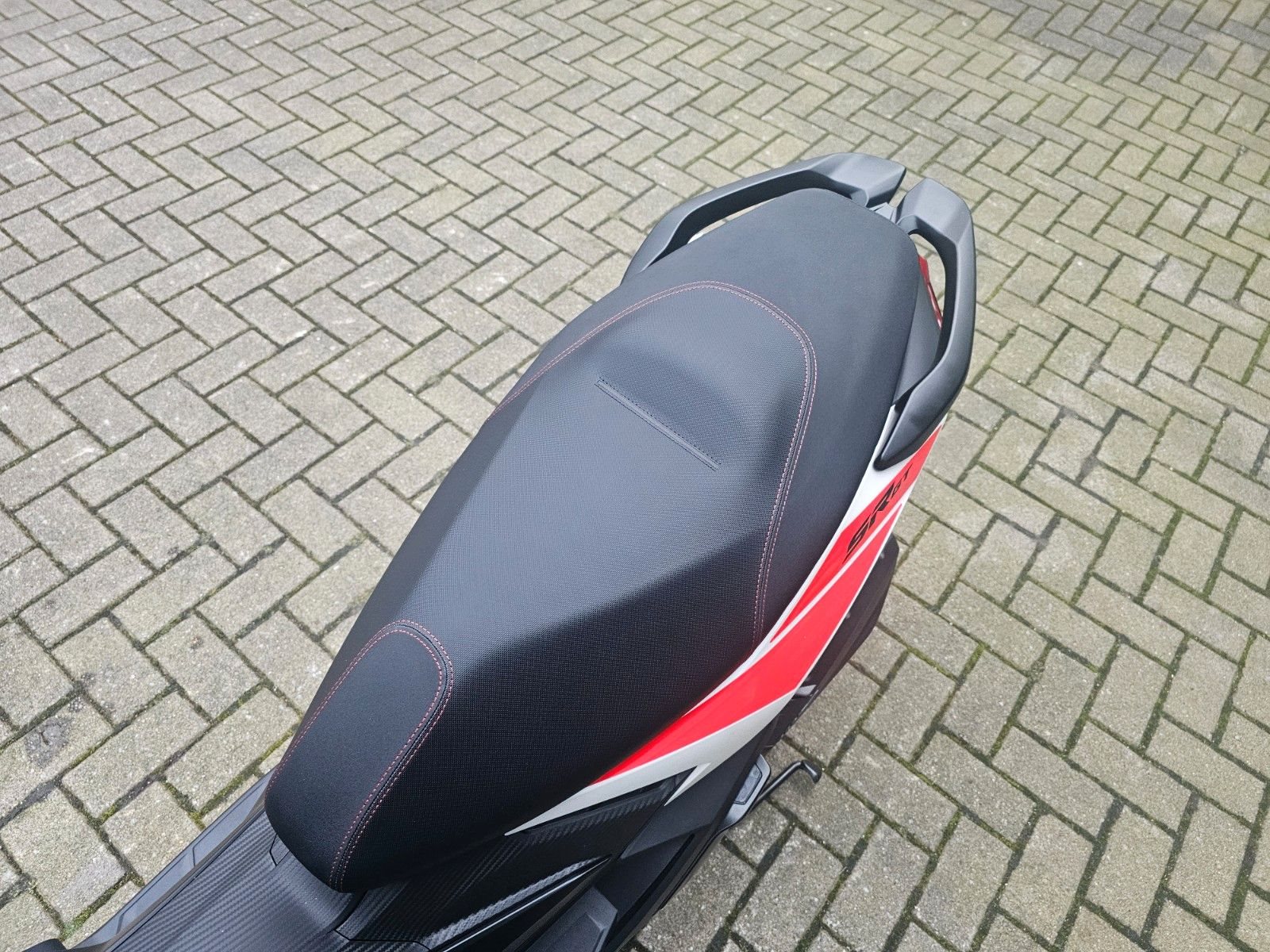 - Für einen Look, der die Stadt herausfordertDer Aprilia SR GT 125 definiert die Balance zwischen Eleganz und urbanem Geist neu, indem er geschwungene Linien und raffinierte Details kombiniert. Die Frontpartie steigt in einer Linie zum Heck hin an und zeichnet ein dynamisches Profil, während die schwarzen Details, wie der vordere Fender, die Räder, die Soziusfußrasten und die Spoiler mit Aprilia-Logo auf beiden Seiten, sich in die unverwechselbare Lackierung einfügen. Die zweifarbige, schwarz-graue Sitzbank, zusammen mit den Logo- und Modell-Decals am Heck, verleihen der Maschine Persönlichkeit und vervollständigen einen Look, der Stil und Leistung vereint.