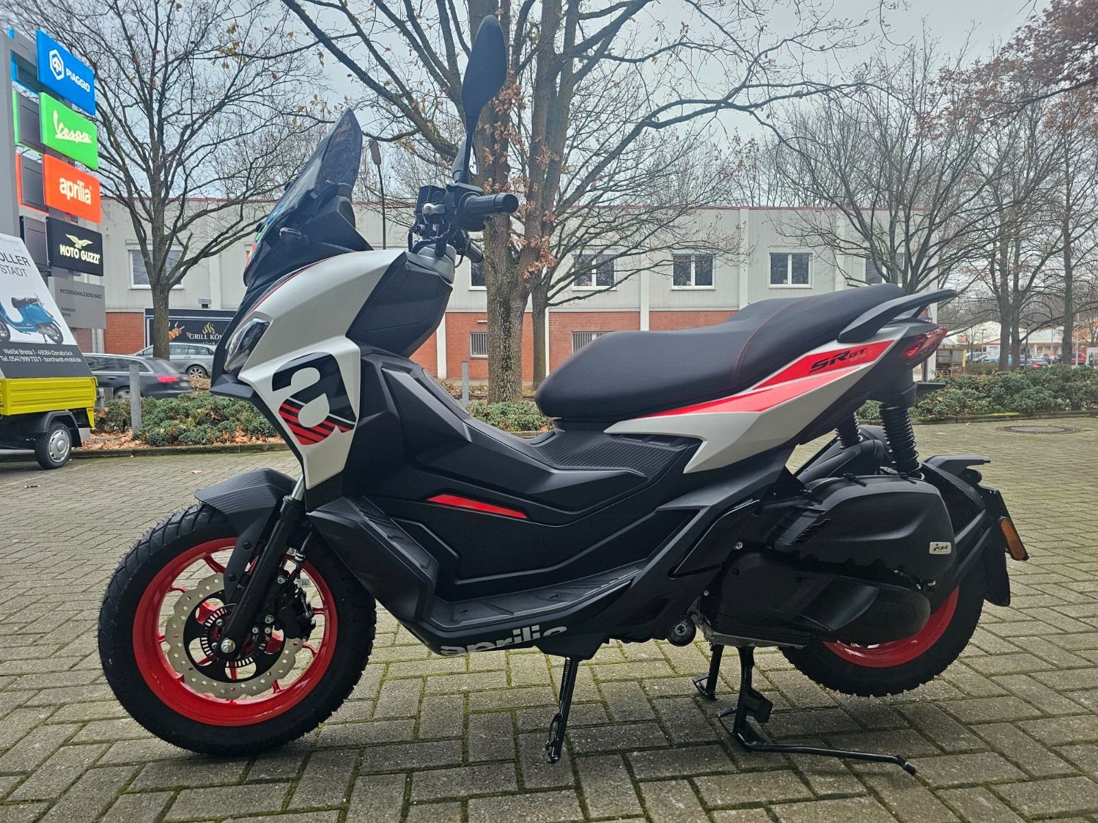 - Für alltägliche Abenteuer Der Aprilia SR GT 125 hat einen Stil, der zu Action und Spaß einlädt, und ist dennoch vielseitig für den täglichen Gebrauch. Er überzeugt mit einem umfassenden LCD-Cockpit und einer praktischen USB-Buchse im Verkleidungsfach. Dank der Integration des Aprilia MIA Konnektivitätssystems (optional erhältlich) können auch bestimmte Funktionen des Smartphones über Bluetooth und die praktischen Lenkerarmaturen gesteuert werden.