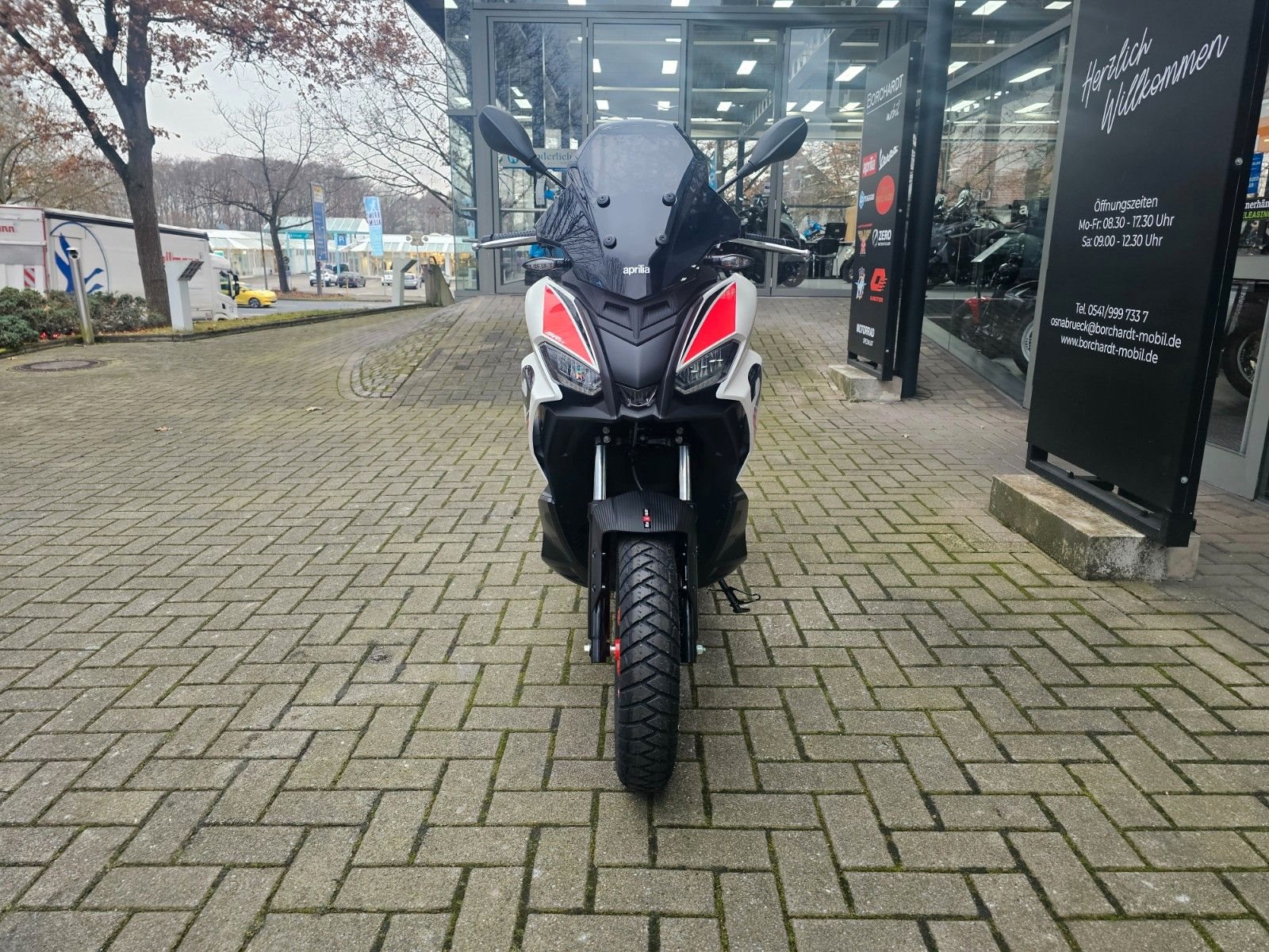 - Full LED-Lichttechnik Typisch Aprilia verfügt der SR GT auch über die Full LED-Frontscheinwerfereinheit einschließlich LED-Tagfahrlicht.