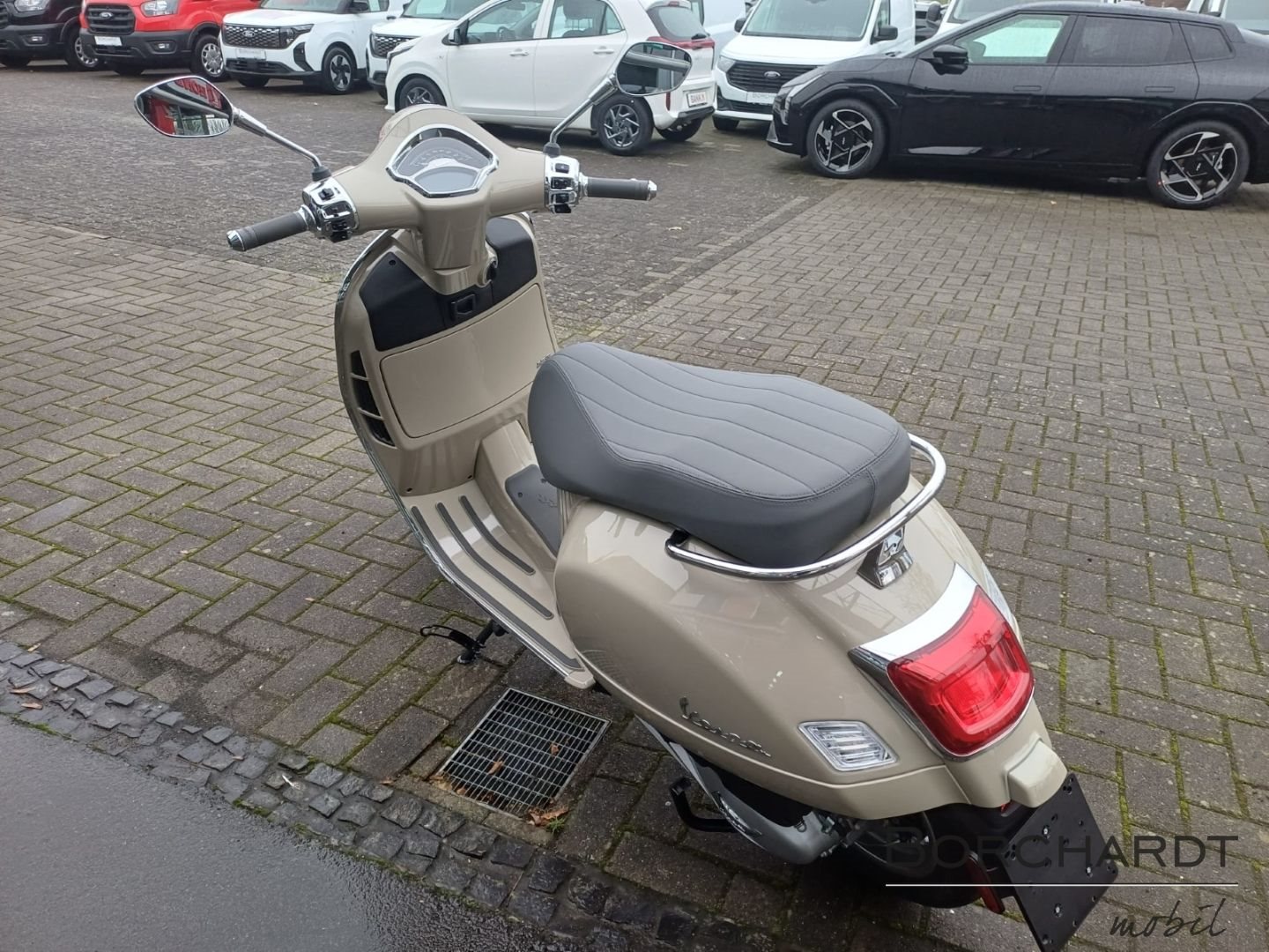 Maximale FunktionalitätKomfort und Bequemlichkeit stehen bei der Vespa Gts ganz oben auf der Tagesordnung, mit Merkmalen wie der schlüssellosen Zündung, dem ferngesteuerten Öffnen des Sitzes und einem praktischen USB-Anschluss zum Aufladen Ihrer Geräte unterwegs. Darüber hinaus verfügt sie über ein Cockpit mit LC Display, das mit Vespa MIA optimiert werden kann, einem Zubehör, das Ihre Vespa mit Ihrem Smartphone verbindet, so dass Sie Anrufe über die Tasten am Lenker entgegennehmen, Musik abspielen und per Sprachbefehl telefonieren können.