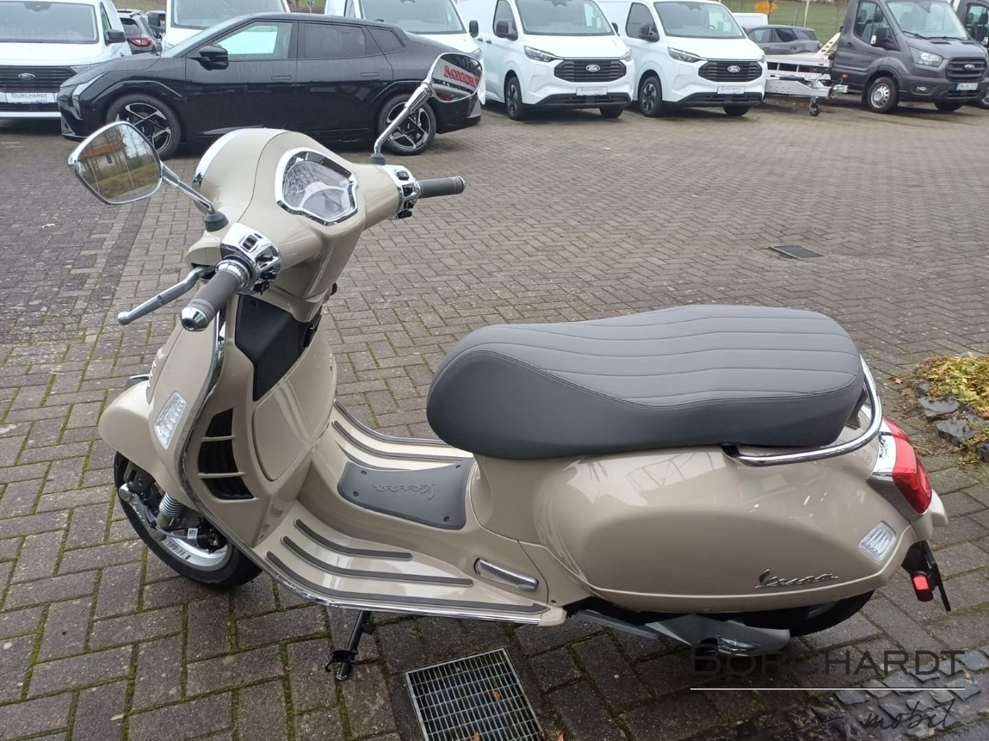 Zeitloses AussehenDie Vespa Gts ist bis ins kleinste Detail durchdacht. Die Metallic-Farben glänzen, Sitzbank und Interieur sind aufeinander abgestimmt, die Chromelemente sorgen für das gewisse Extra an Eleganz und natürlich trägt die berühmte "Krawatte" weiterhin zum Status der Vespa als zeitlose Ikone bei.