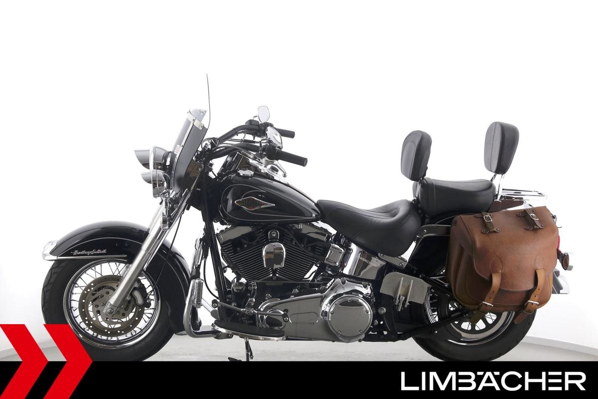 Eine Harley-Davidson Heritage Softail Classic FLSTC in sehr gepflegtem Zustand u.a. mit Tourenscheibe und Sturzbügel.