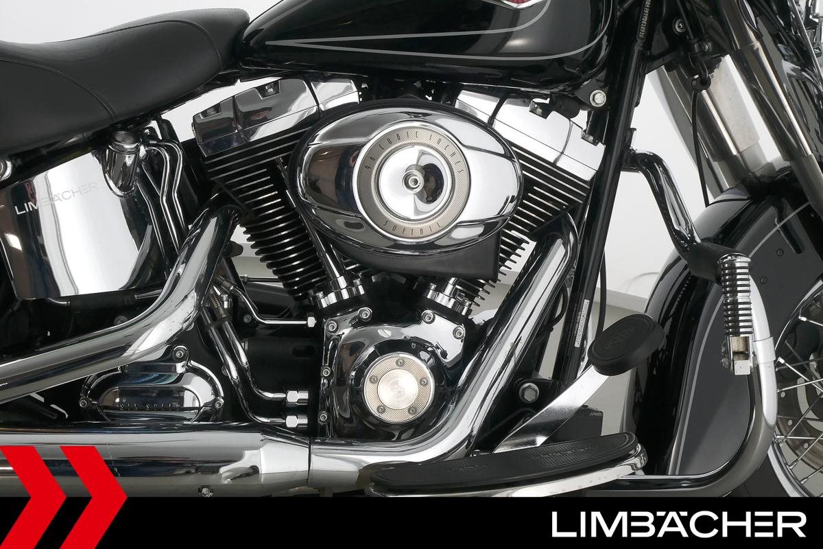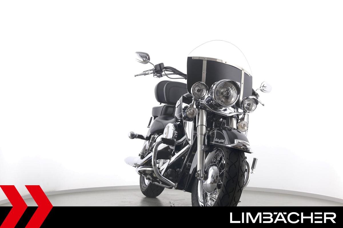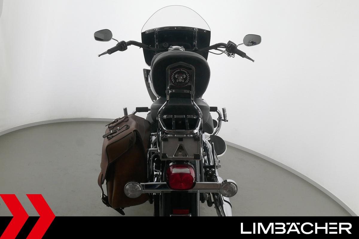 Eine Harley-Davidson Heritage Softail Classic FLSTC in sehr gepflegtem Zustand u.a. mit Tourenscheibe und Sturzbügel.