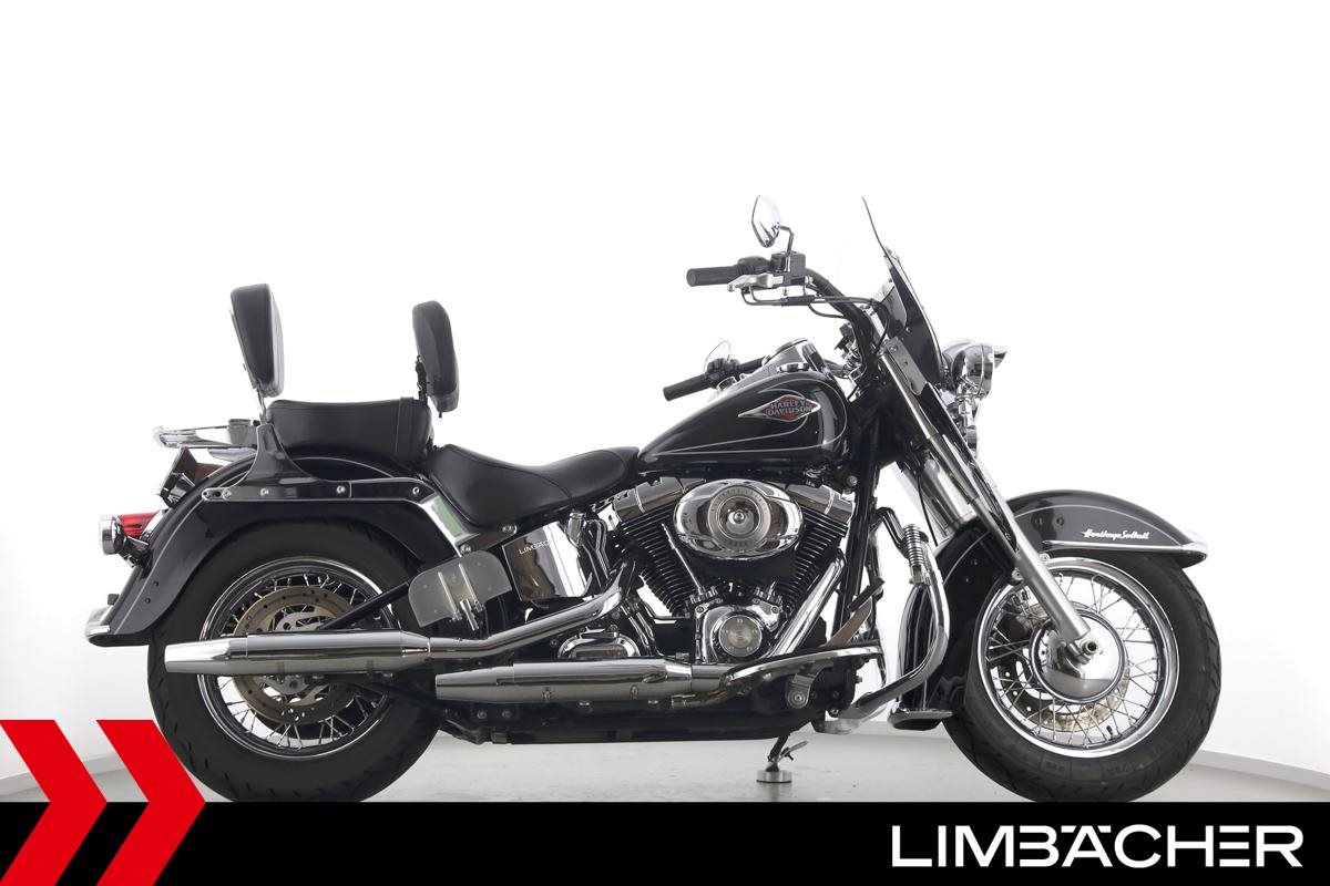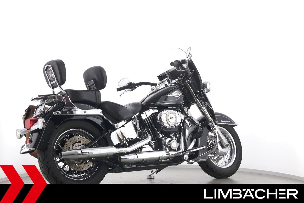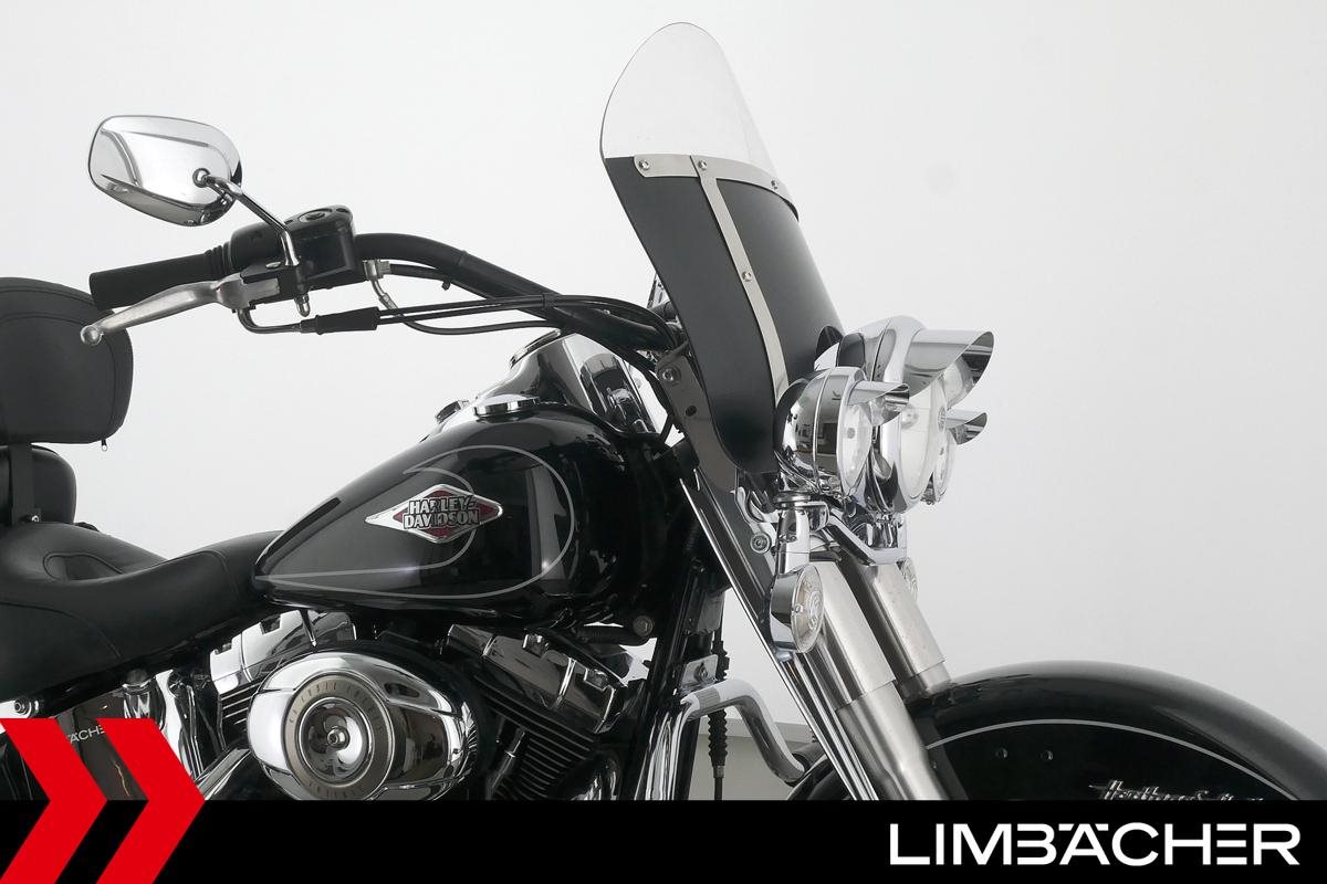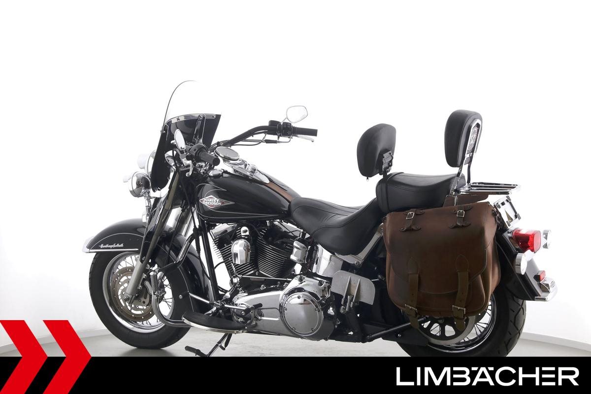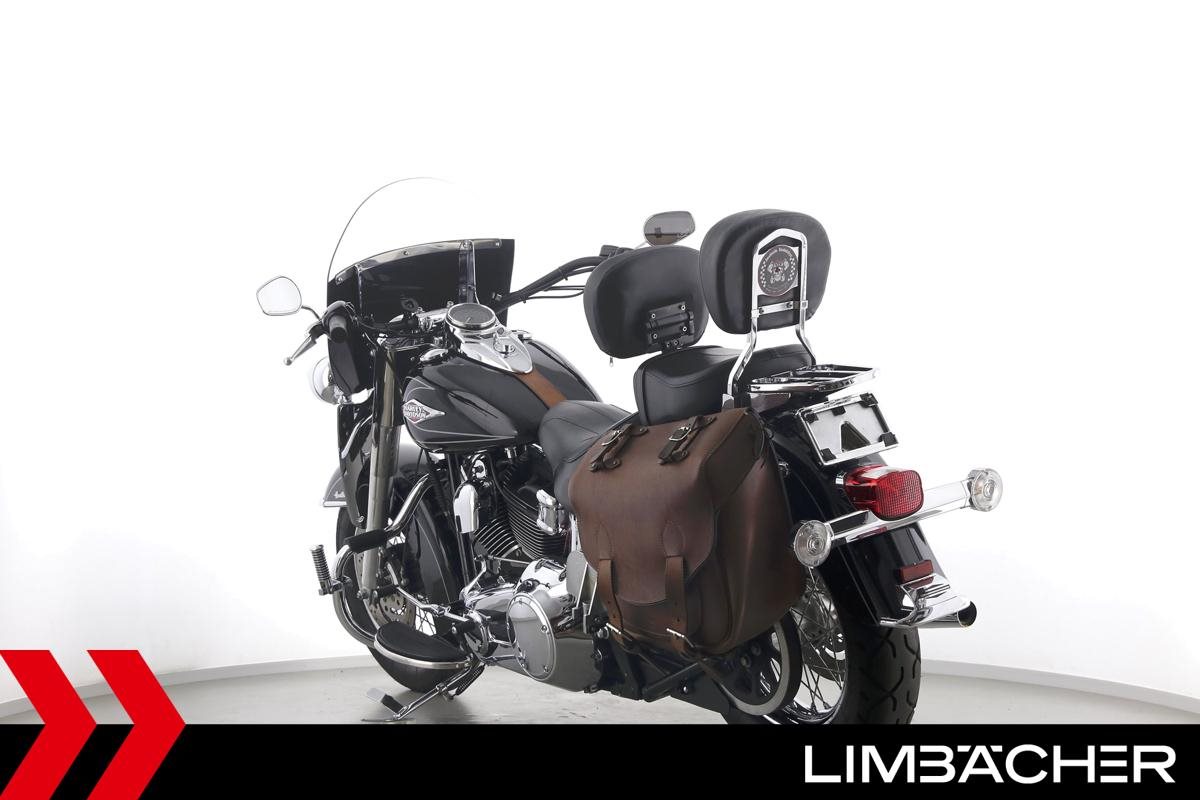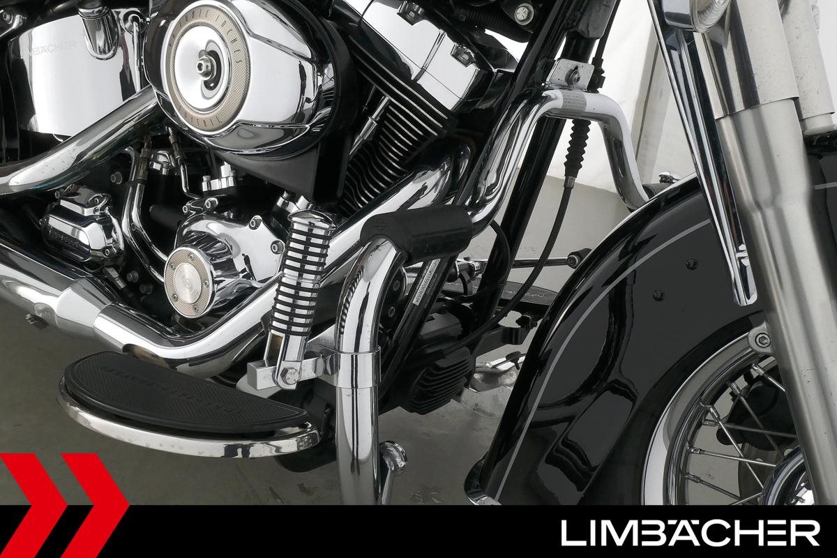 Eine Harley-Davidson Heritage Softail Classic FLSTC in sehr gepflegtem Zustand u.a. mit Tourenscheibe und Sturzbügel.