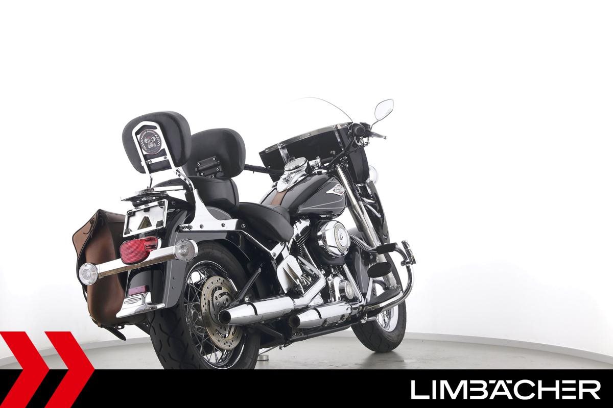 Eine Harley-Davidson Heritage Softail Classic FLSTC in sehr gepflegtem Zustand u.a. mit Tourenscheibe und Sturzbügel.