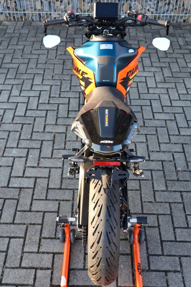 Auch mit nur 125 cm ist die KTM 125 DUKE eine 125 %ige DUKE! Demselben NAKED-Ethos folgend wie ihre größeren Schwestern, punktet die KTM 125 DUKE 2024 mit einer ganz neuen, muskulösen Ausstrahlung. Mit einem neuen Rahmen, Federungspaket, neuen LED-Scheinwerfern und einer neuen Riding Technologie ist ein noch dynamischerer Fahrstil auf gerader Strecke und in den Kurven möglich.
