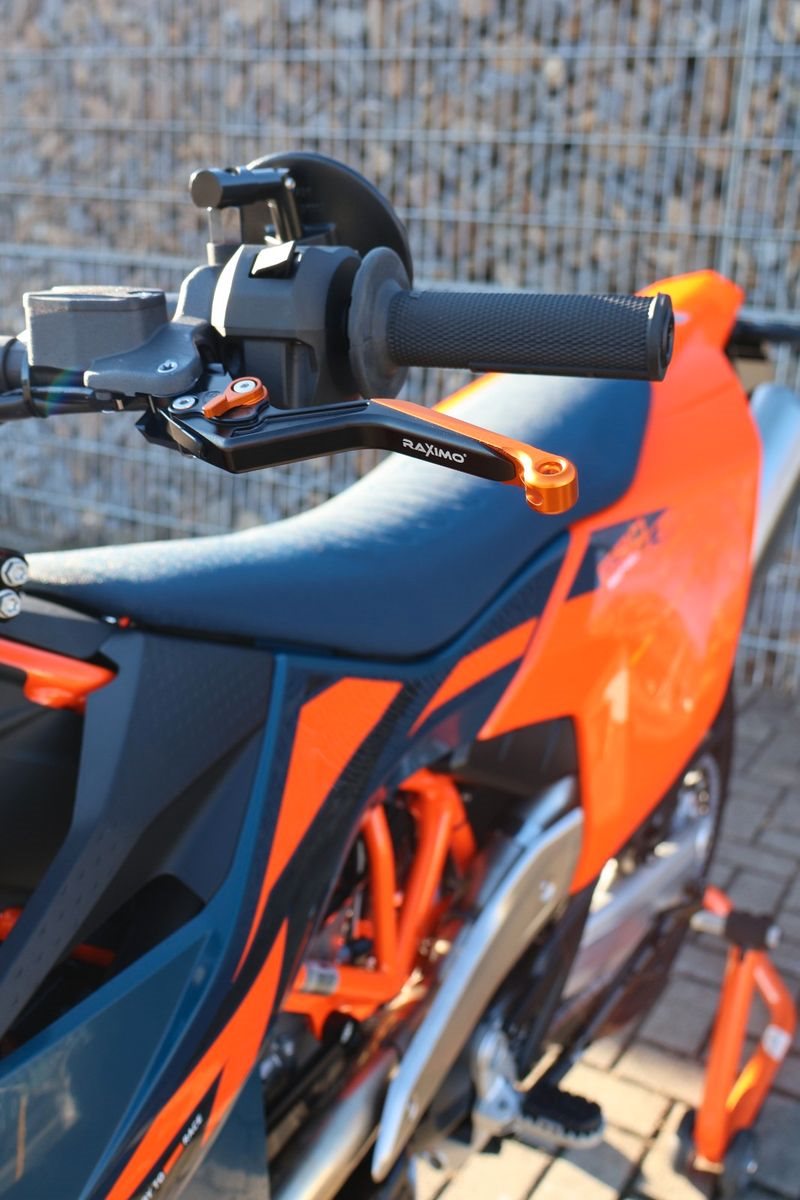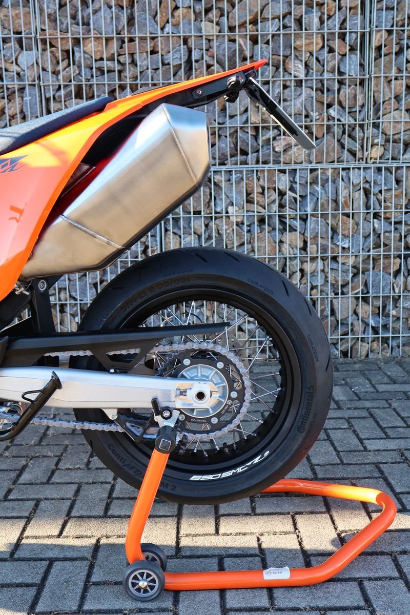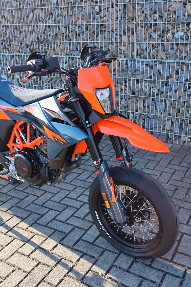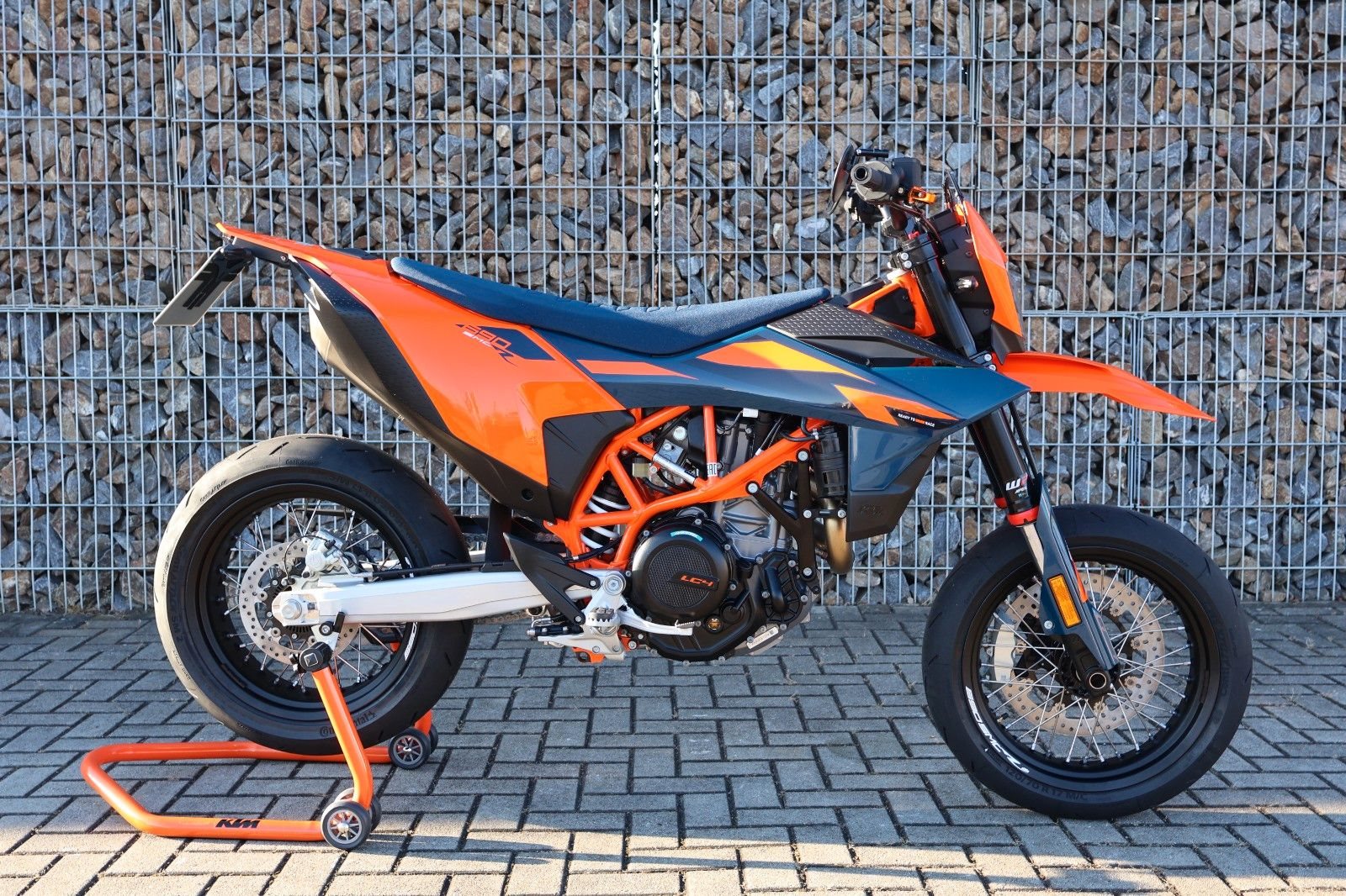 Die KTM 690 SMC R setzt sich gegen die Konkurrenz durch und erweist sich als unangefochtener König ihrer Klasse. Die KTM 690 SMC R bietet dem Fahrer ein agiles Handling, klassenbeste Leistung und eine auf den Fahrer ausgerichtete Ergonomie und verkörpert den Begriff READY TO RACE mit 110% Hingabe zu ihrem Handwerk. Ob beim Rutschen in die Kurven, bei Power-Wheelies über Kuppen oder bei harten Sprüngen durch enge Bergpässe - der König der Supermoto für die Street greift an.