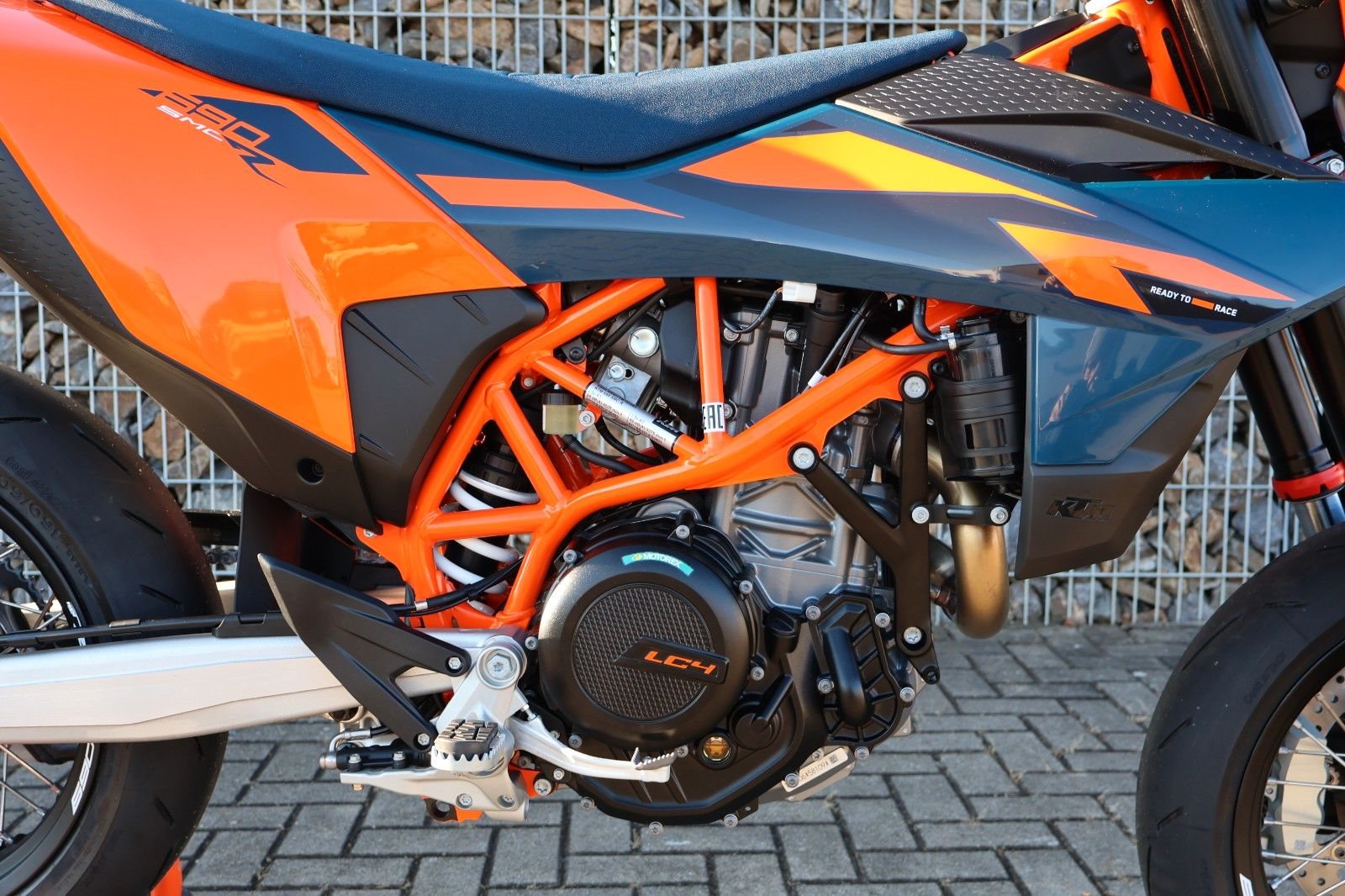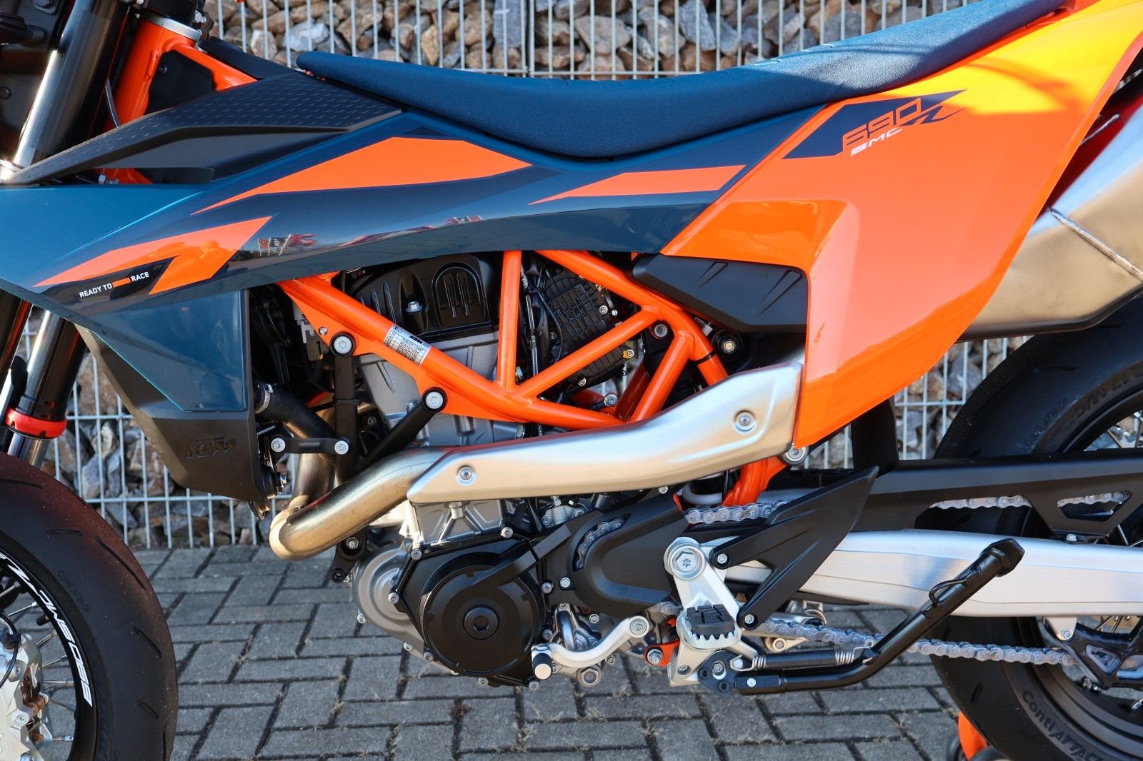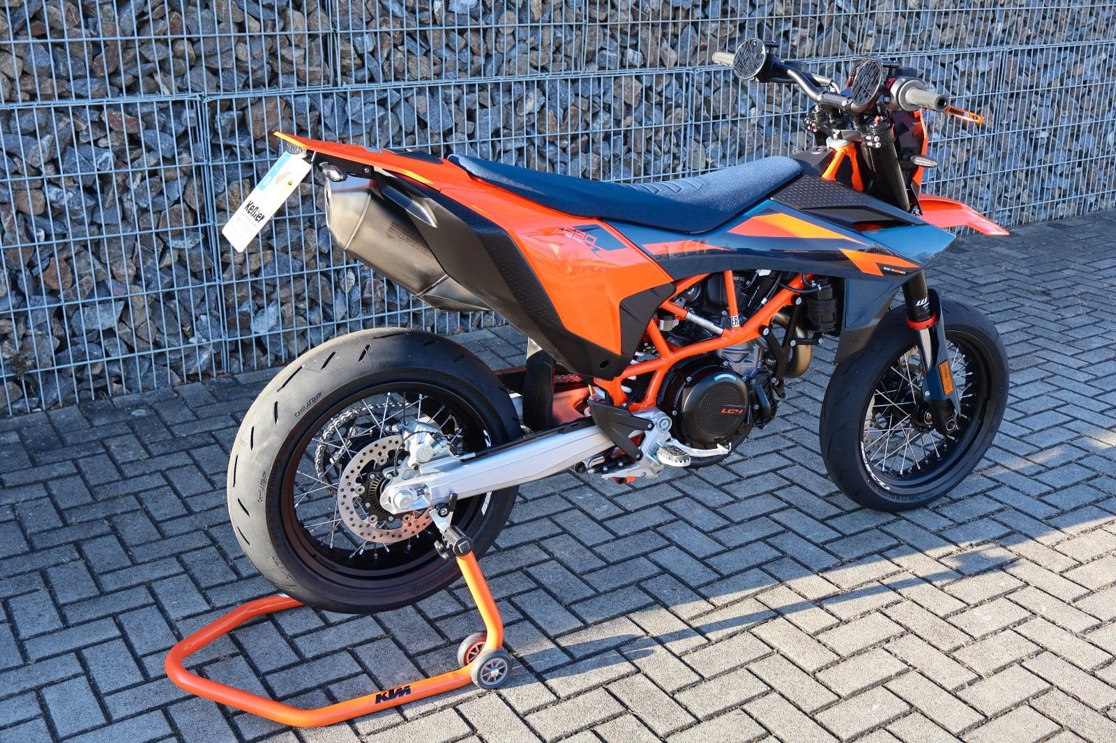 Die KTM 690 SMC R setzt sich gegen die Konkurrenz durch und erweist sich als unangefochtener König ihrer Klasse. Die KTM 690 SMC R bietet dem Fahrer ein agiles Handling, klassenbeste Leistung und eine auf den Fahrer ausgerichtete Ergonomie und verkörpert den Begriff READY TO RACE mit 110% Hingabe zu ihrem Handwerk. Ob beim Rutschen in die Kurven, bei Power-Wheelies über Kuppen oder bei harten Sprüngen durch enge Bergpässe - der König der Supermoto für die Street greift an.