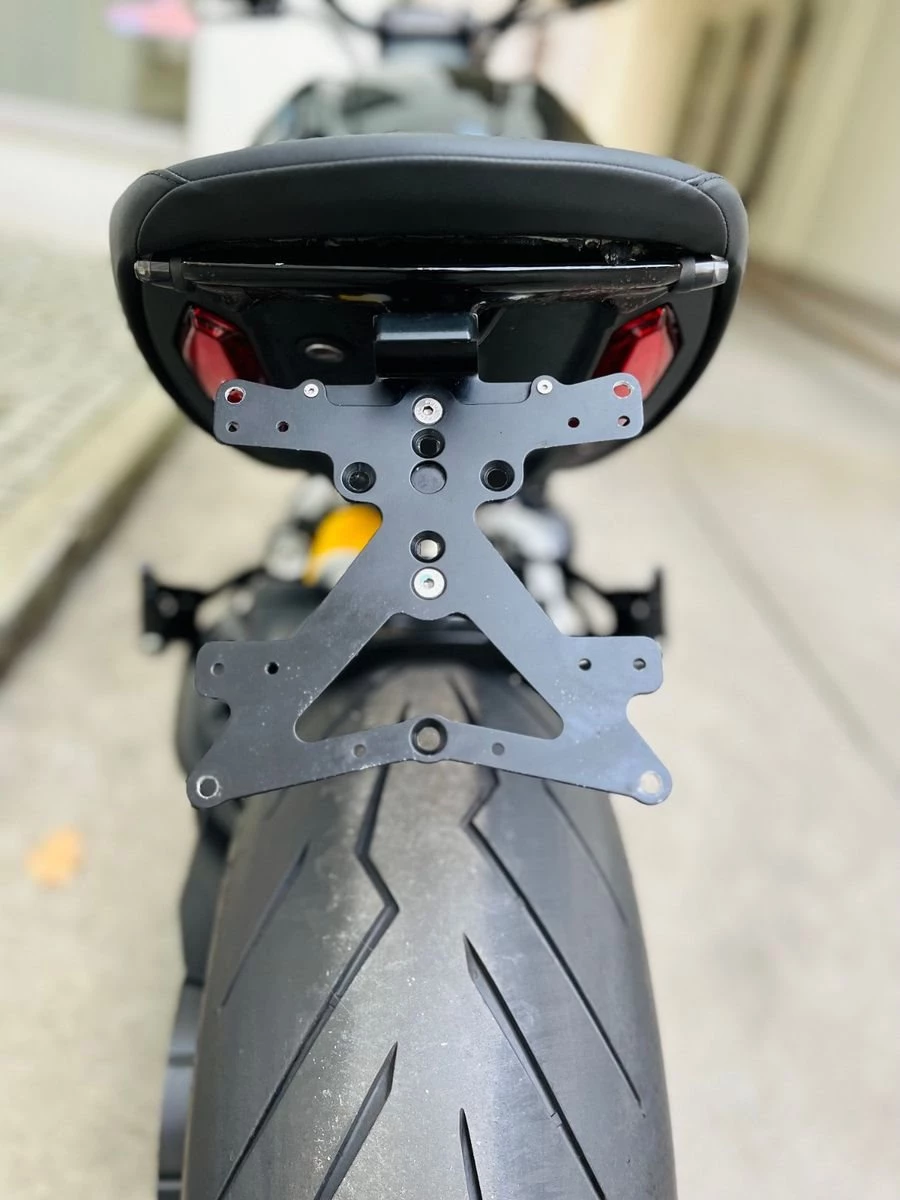 Neben dem Termignoni Racing Endschalldämpfer(3250€ mit Montage) & den performance Felgen (2400€ mit Montage) hat das Bike einen aufwendigen Heckumbau erhalten bei dem die Blinker und der Kennzeichenträger im Haltegriff integriert wurden.
