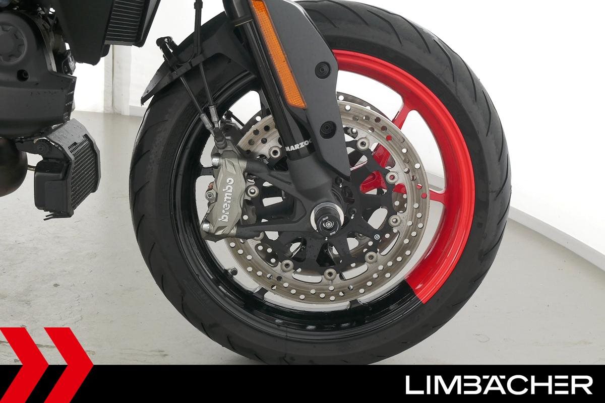 Eine Ducati Hypermotard 950 RVE aus zweiter Hand in Topzustand u.a. mit Spark-Endschalldämpfer sowie kurzem Kennzeichenhalter.