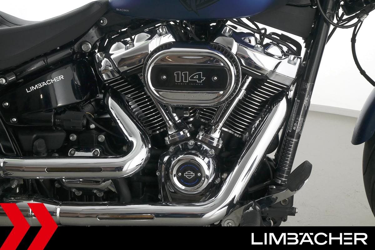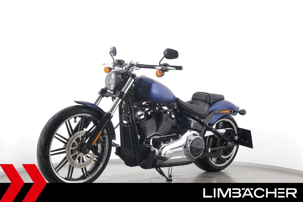 Eine scheckheftgepflegte Harley-Davidson Softail Breakout 114 FXBRS ANX aus erster Hand in sehr gepflegtem Zustand u.a. mit KessTech-Klappenauspuff sowie seitlichem Kennzeichenhalter.
