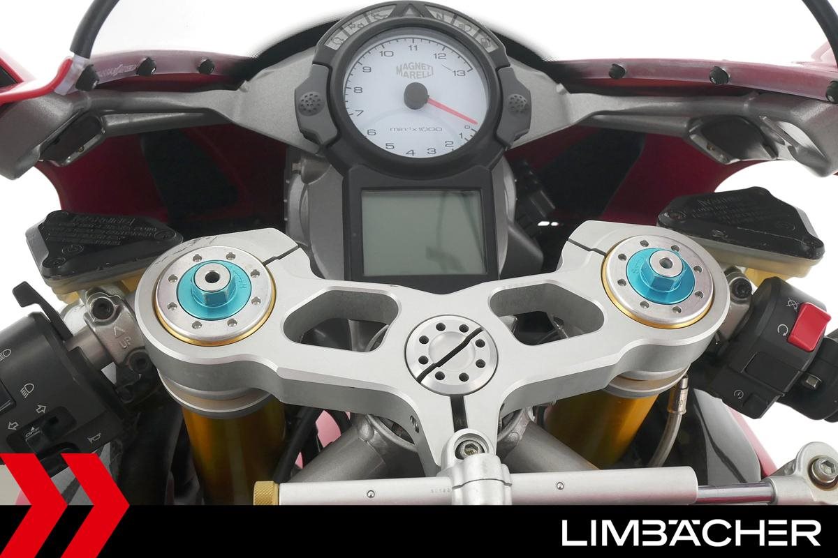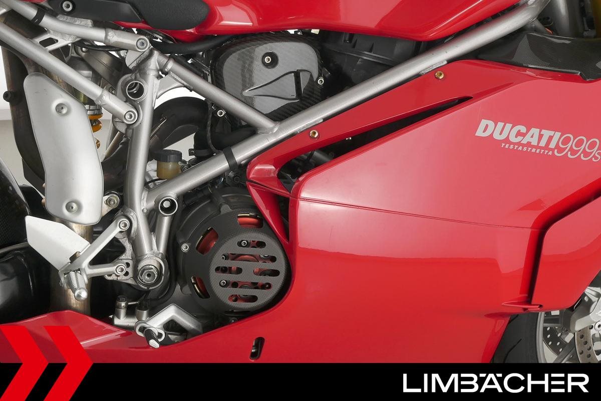 Eine Ducati 999S Monoposto in gepflegtem Zustand u.a. mit Öhlins-Fahrwerk sowie Carbon-ZR- und -Hinterrad-Abdeckungen.