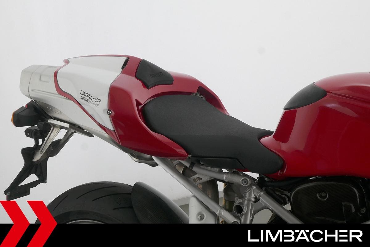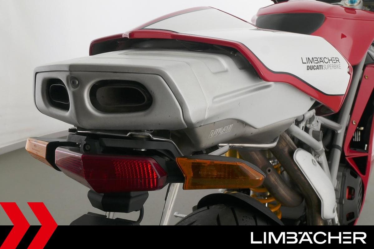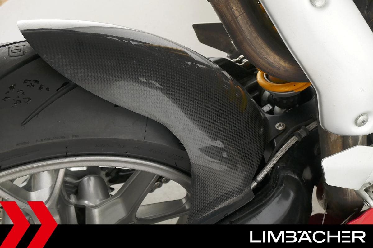 Eine Ducati 999S Monoposto in gepflegtem Zustand u.a. mit Öhlins-Fahrwerk sowie Carbon-ZR- und -Hinterrad-Abdeckungen.