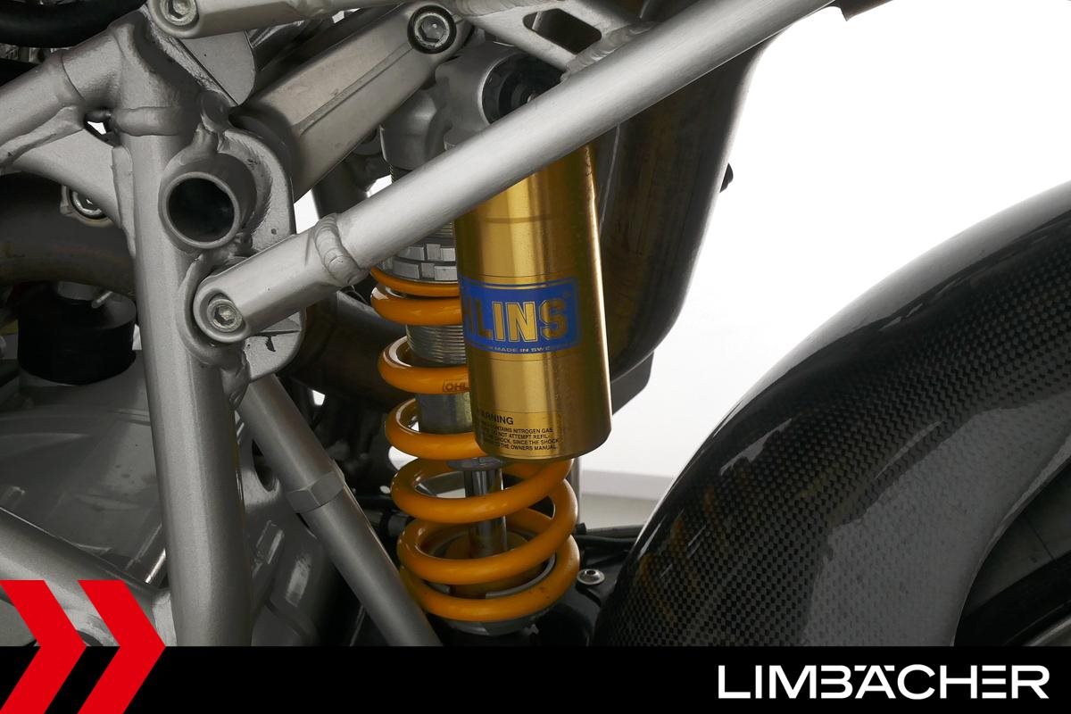 Eine Ducati 999S Monoposto in gepflegtem Zustand u.a. mit Öhlins-Fahrwerk sowie Carbon-ZR- und -Hinterrad-Abdeckungen.