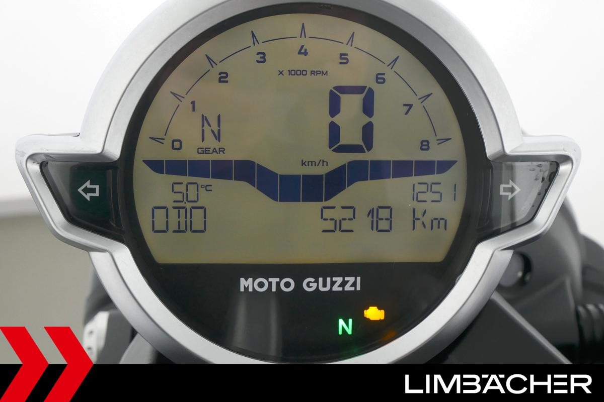 Eine Moto Guzzi V9 Bobber aus zweiter Hand in sehr gepflegtem Zustand u.a. mit Mistral-Endschalldämpfer sowie Traktionskontrolle.