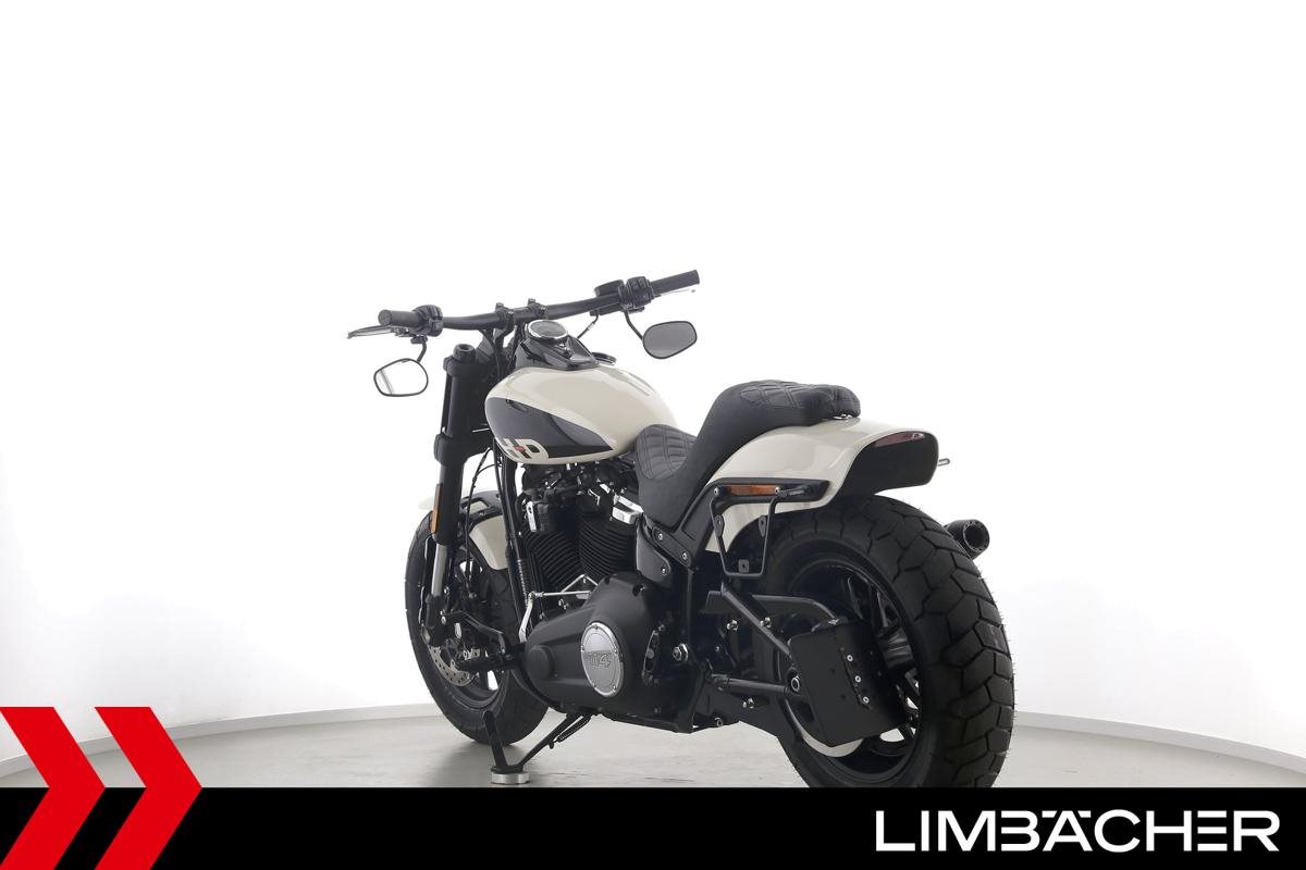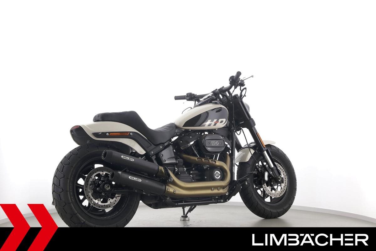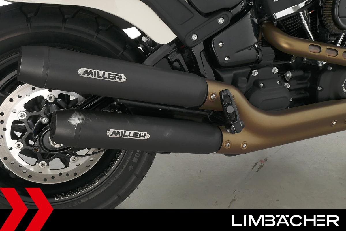 Eine Harley-Davidson Softail Fat Bob 114 FXFBS in gepflegtem Zustand u.a. mit Miller-Endschalldämpfer sowie seitlichem Kennzeichenträger.