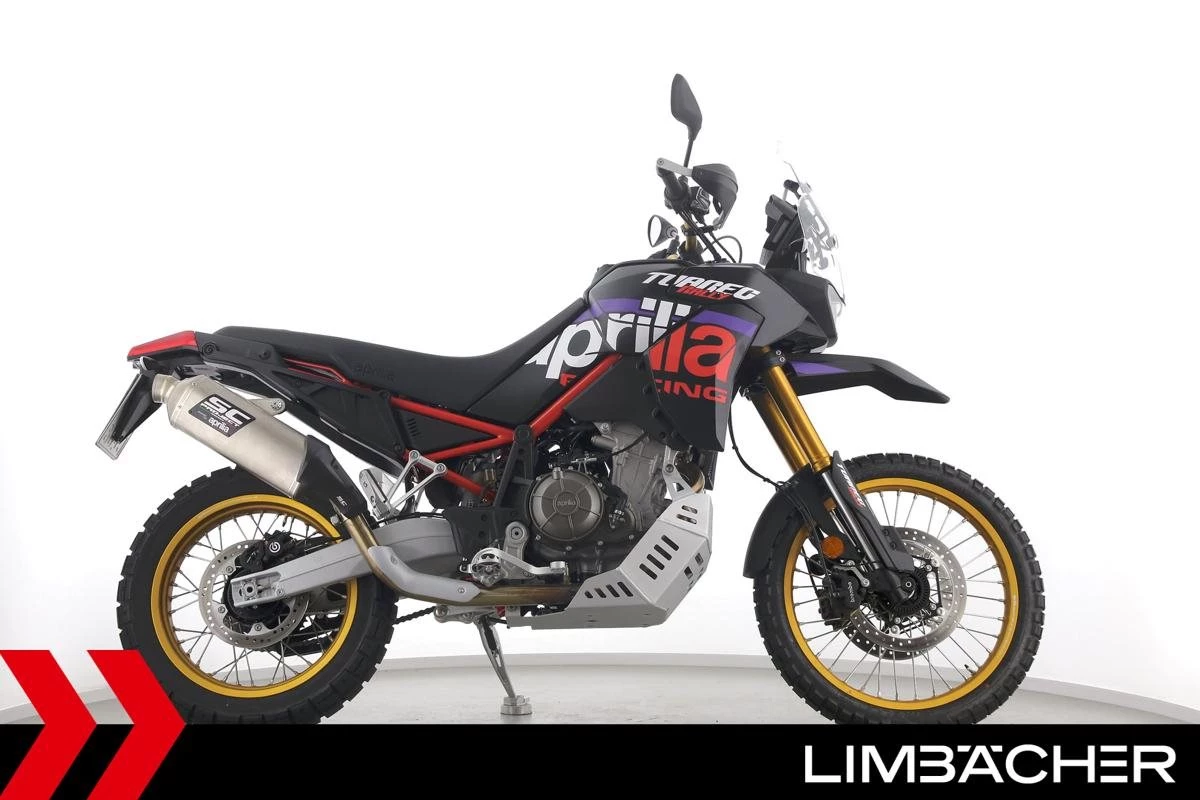 Eine scheckheftgepflegte Aprilia Tuareg 660 Rally aus erster Hand in neuwertigem Zustand u.a. mit SC-Project-Endschalldämpfer.
