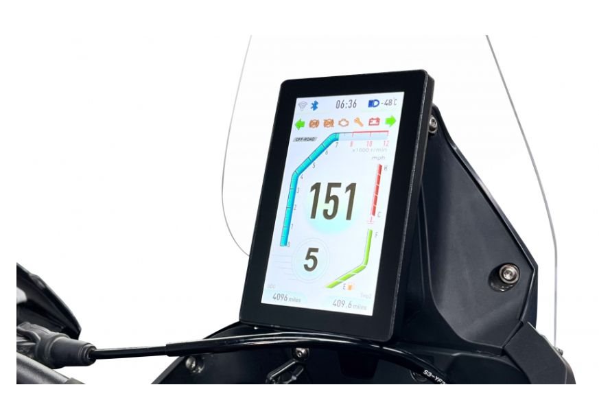Mit einem hochfesten Stahlrahmen, langhubigem Fahrwerk, 21- und 18-Zoll-Rädern und einem großen 7-Zoll-TFT-Display im Hochformat mit Mirror-Link-Technologie ist diese Maschine bereit, Kilometer um Kilometer zu fressen und dabei alles unter Kontrolle zu haben.