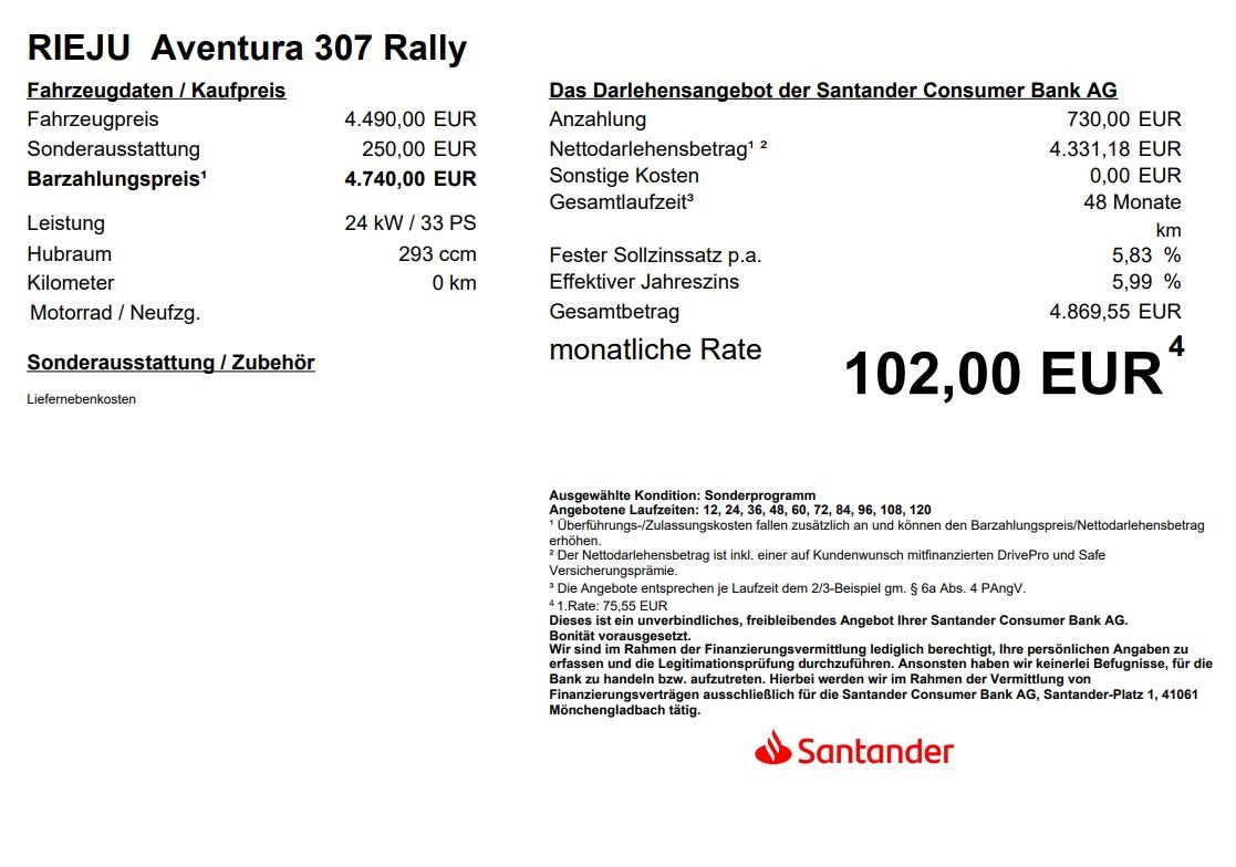 Hinweis: Die Aventura 307 Rally wird ca ab Januar/ Februar zu uns kommen! Lieferzeit dann ca 4 Wochen!