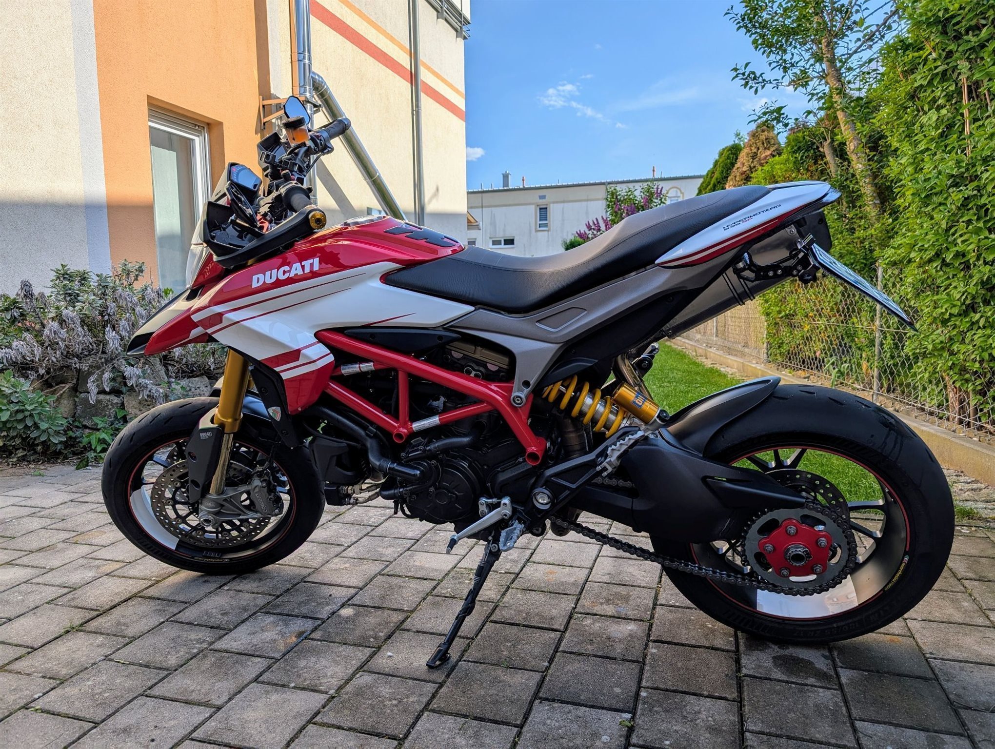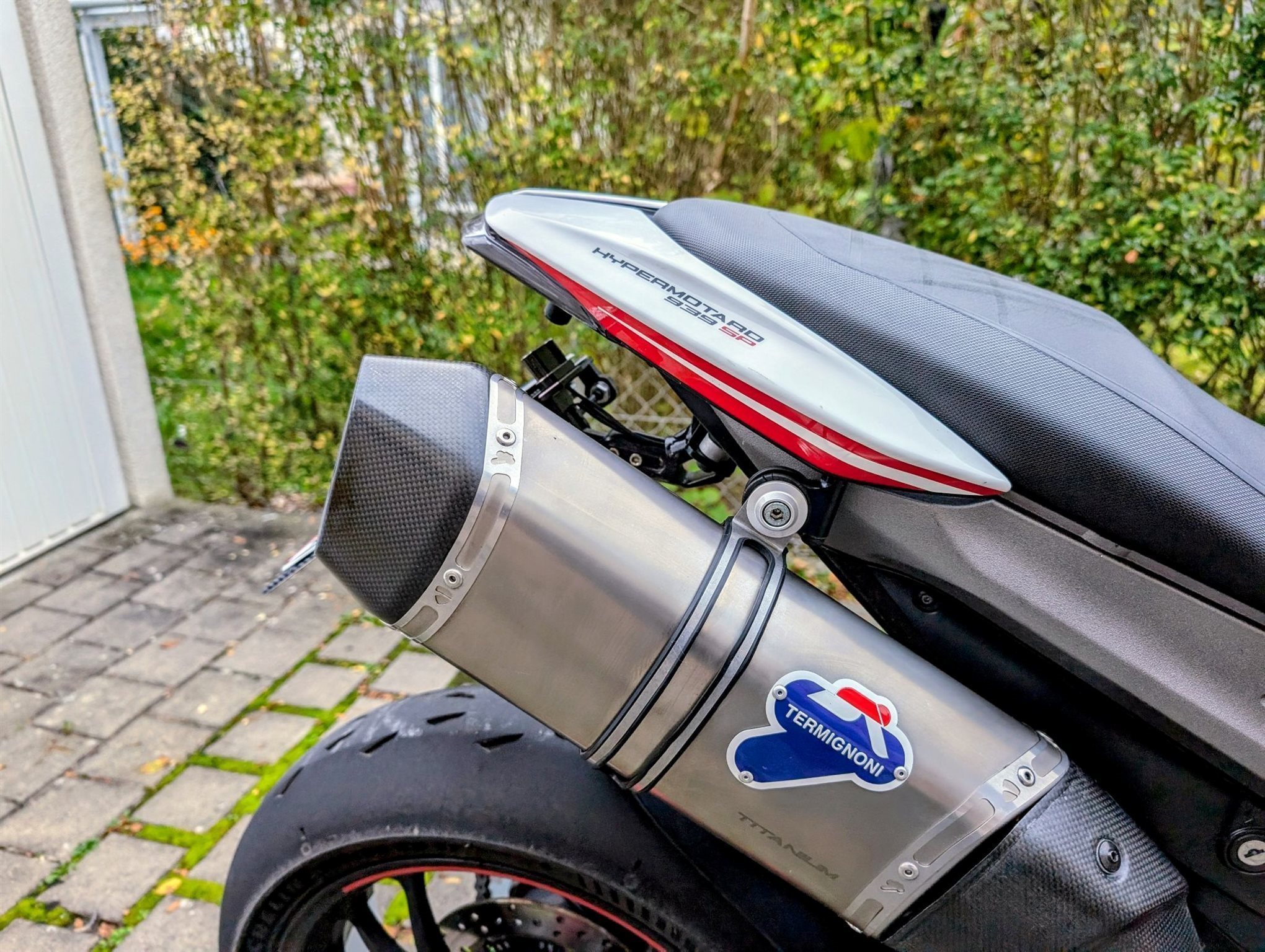 Sehr gepflegte Hypermotard 939 SP inkl. Original Ducati-Koffer & Träger. Zusätzlich ist der Termignioni Titanium High Mount mit KAT & Sportmapping von Ducati verbaut.