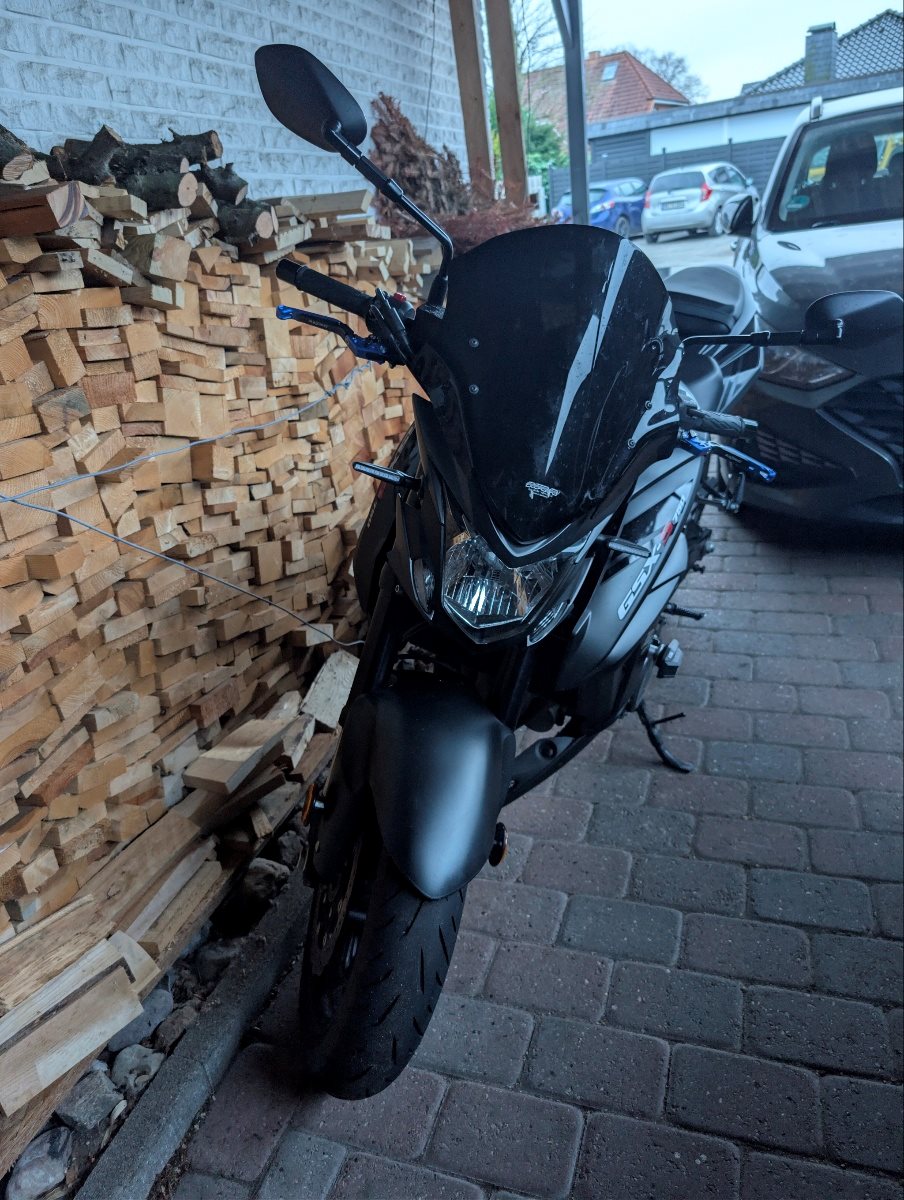 Es sind LED Laufblinker und ein kurzes Heck verbaut. Die Originalen Teile sind vorhanden. Es wurde sich kein Kabel abgeschnitten, da es eine Steckverbindung ist. Es ist eine Phillips LED Birne verbaut. Ein Batterieladekabel und eine USB lsdebuxhser am Lenker sowie ein kleines abnehmbares Schild. Der SP Handyhalter ist nicht Teil des Angebots. Die Spiegel sind mit Adapter verlängert und sind Wahl-weise mit dabei.
