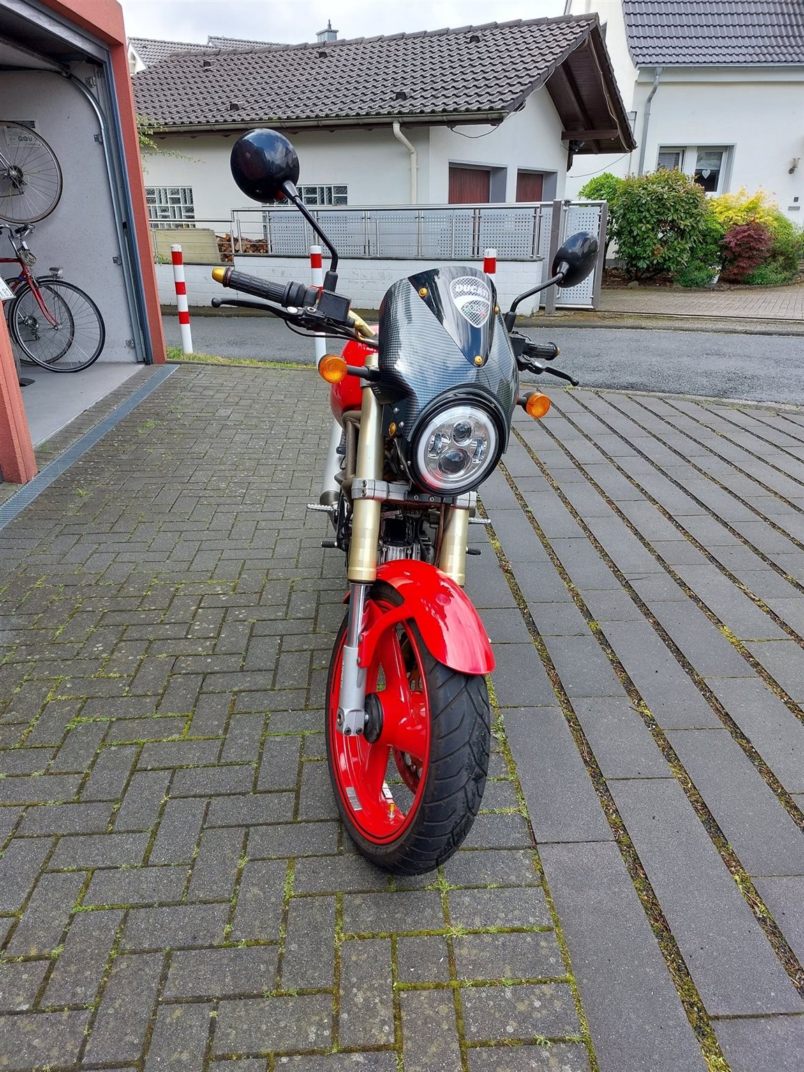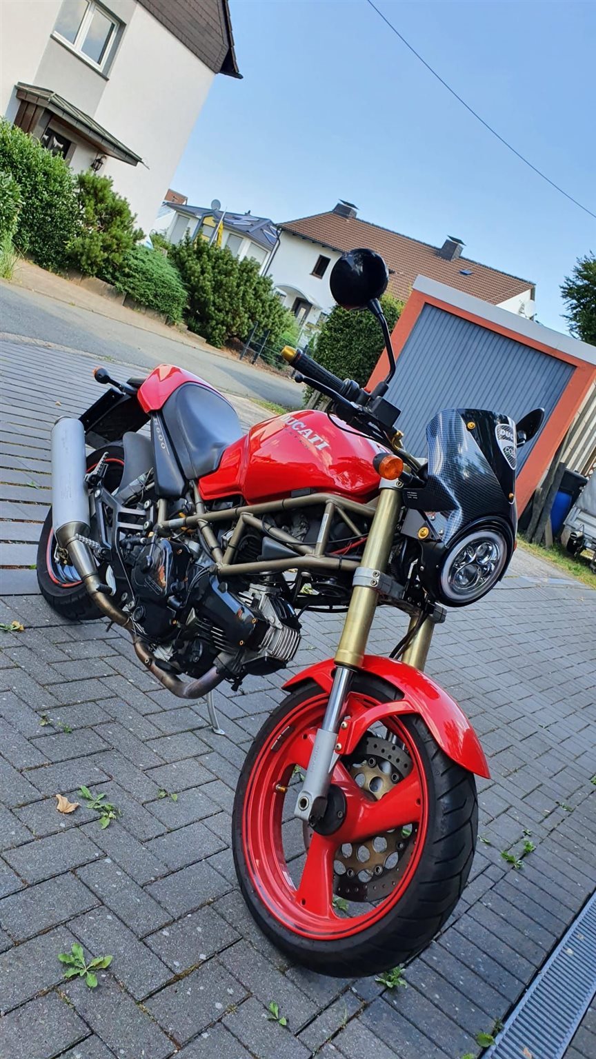 Aus gesundheitlichen Gründen will meine Frau die Duc verkaufen! Die Duc ist aktuell durch den TÜV (Juni 2027)! In diesem Zusammnehang sind die Eintragungen korrigiert worden und es gab ein neus Kettenkit und neue Pirelli's! Sie ca. 46000 km gelaufen! Sie unfallfrei! Und teilweise kunstoffbeschichtet! Sie Fotos!