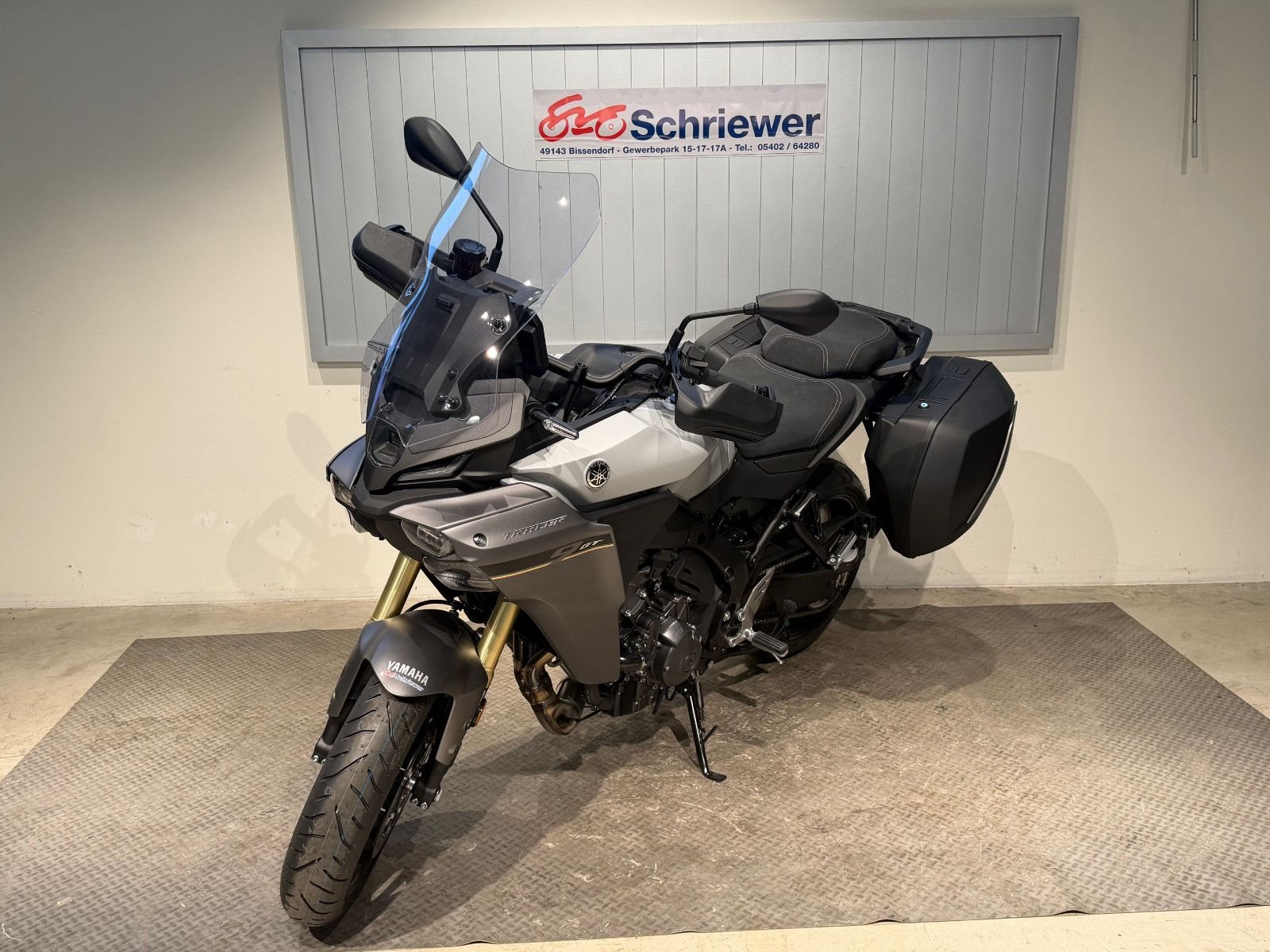 Mit Yamahas berühmtem Fahrwerk im Deltabox-Stil und dem CP3-Motor als Herzstück ist es keine Überraschung, dass die TRACER 9 GT die Sport Touring Klasse neu definiert. Mit der Yamaha DNA ist die TRACER 9 GT ein Sportmotorrad, aber auch gleichermaßen für Touren mit Beifahrer und Gepäck geeignet. Das semiaktive elektronische Fahrwerk passt sich den Gegebenheiten und den fahrerischen Vorlieben an. Außerdem sind eine Vielzahl weiterer intelligenter Technologien an Bord, darunter ein Verbundbremssystem mit Fahrzeughalteassistent und - als Weltneuheit - ein neuer Matrix-LED-Scheinwerfer, der den Lichtstrahl automatisch so anpasst, dass der Fahrer stets die optimale Sicht hat, ohne den Gegenverkehr zu blenden