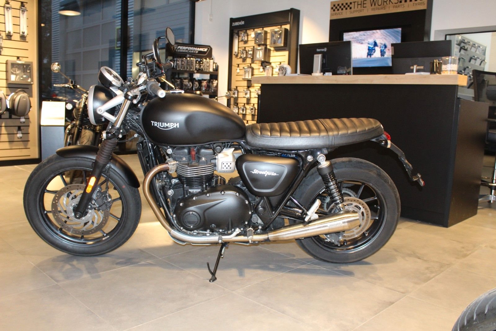 Street Twin mit Vance&Hines Endschalldämpfer und kleine Blinker Triumph Original