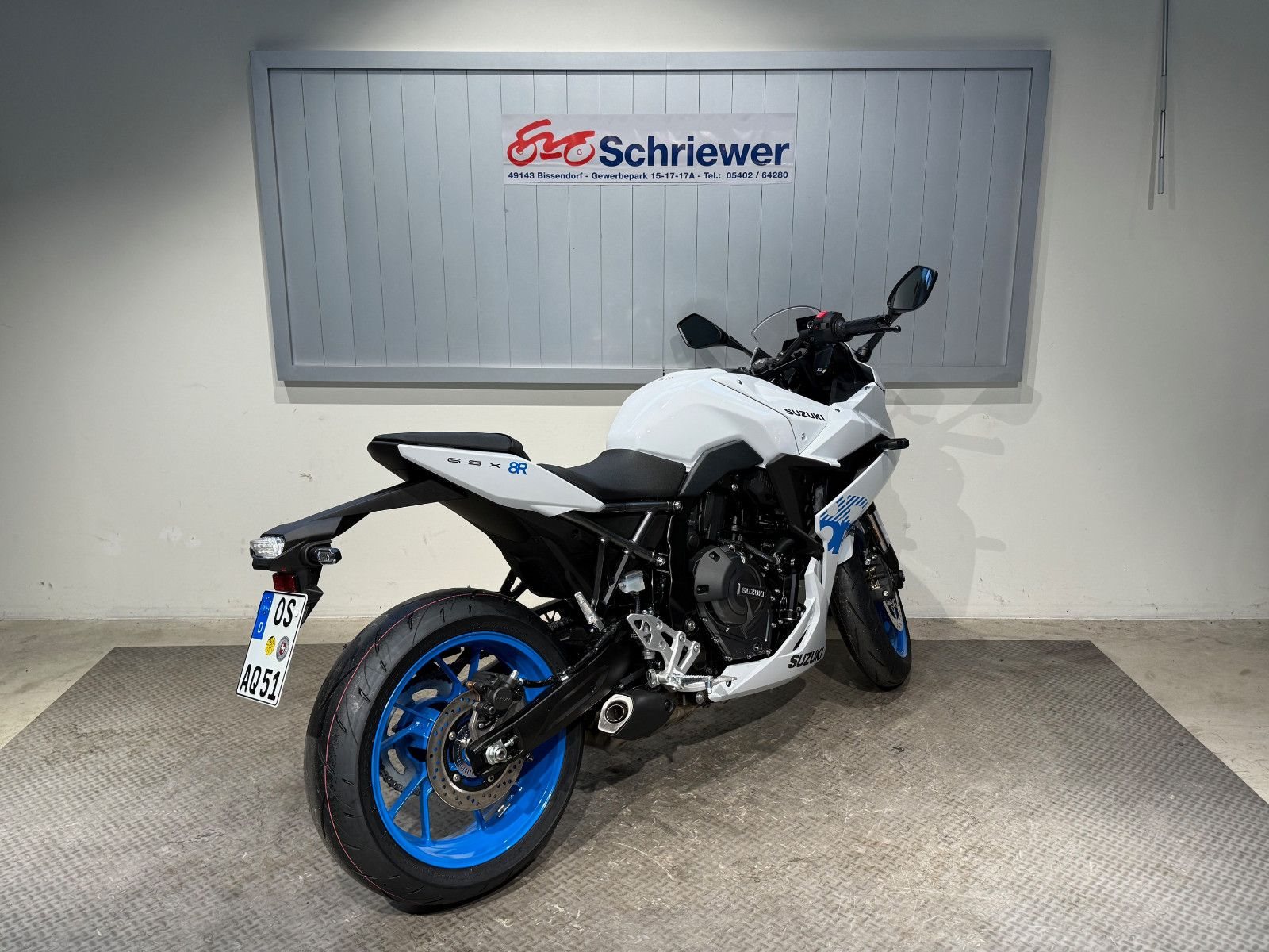 Seit über 40 Jahren steht die Suzuki R-Reihe für Innovation und Spitzenleistung. Die neue GSX-8R besticht durch ihr messerscharfes Design und einen der besten Parallel-Twins seiner Art. Das Fahrwerk setzt neue Maßstäbe und lädt sowohl zu sportlichen Sprints auf der Rennstrecke als auch zu komfortablen Fahrten im Alltag ein.