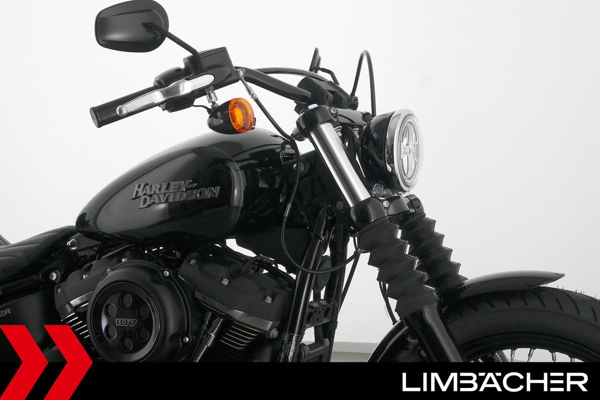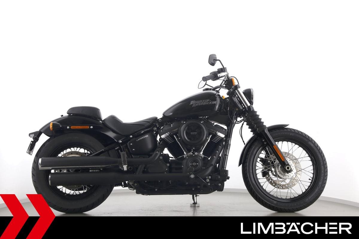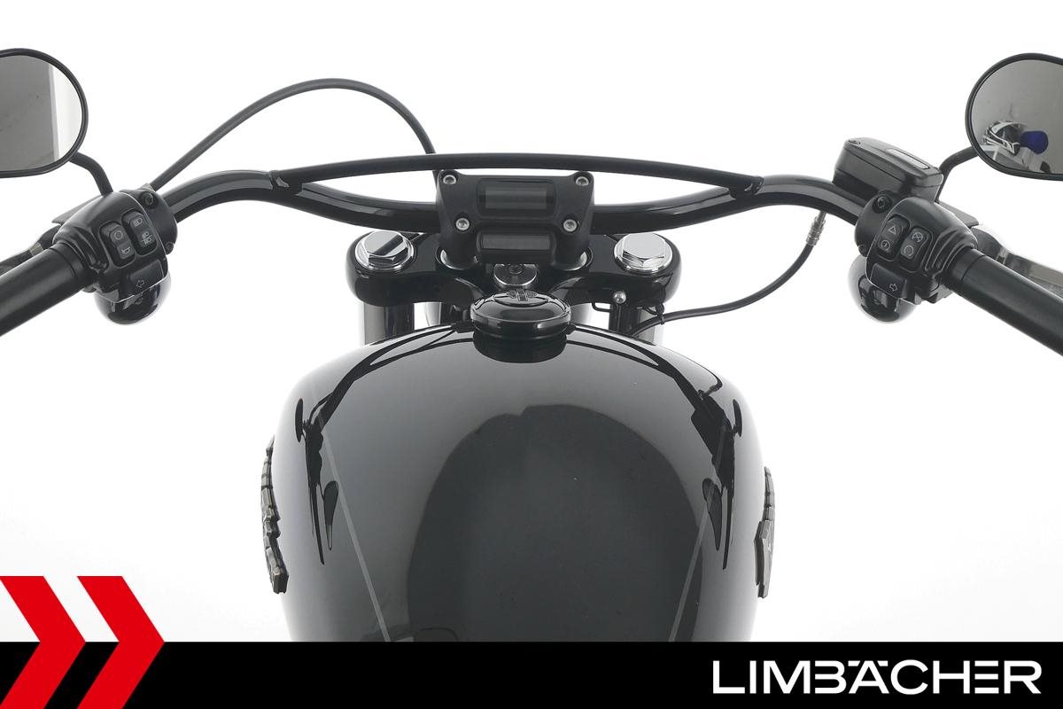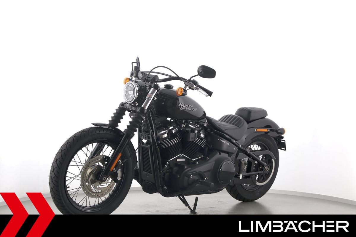 Eine Harley-Davidson Softail Street Bob FXBB in sehr gepflegtem Zustand u.a. mit Originalausstattung und Sonderlenker Typ Hollywood.