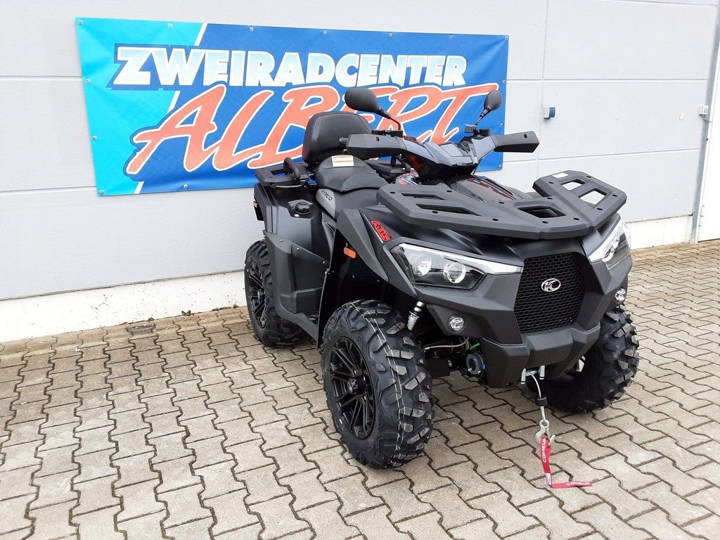 Und das ist noch längst nicht alles. Zur Vollausstattung gehören zum Beispiel eine elektronische Lenkunterstützung, die geschwindigkeitsabhängig reagiert, eine kräftige Seilwinde, stufenlose Variomatik, zuschaltbarer Allradantrieb und Differenzialsperre vorne, Untersetzungsgetriebe, Bergabfahrhilfe, Anhängerkupplung, zentrales LCD-Cockpit und sportliche Doppelspeichen-Felgen mit Maxxis Bighorn Reifen.