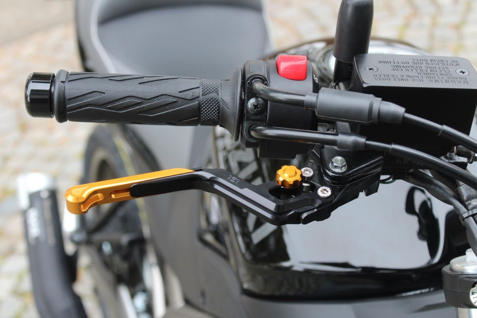 - farbige und in ihrer Länge einstellbare Kupplungshebel und Bremshebel