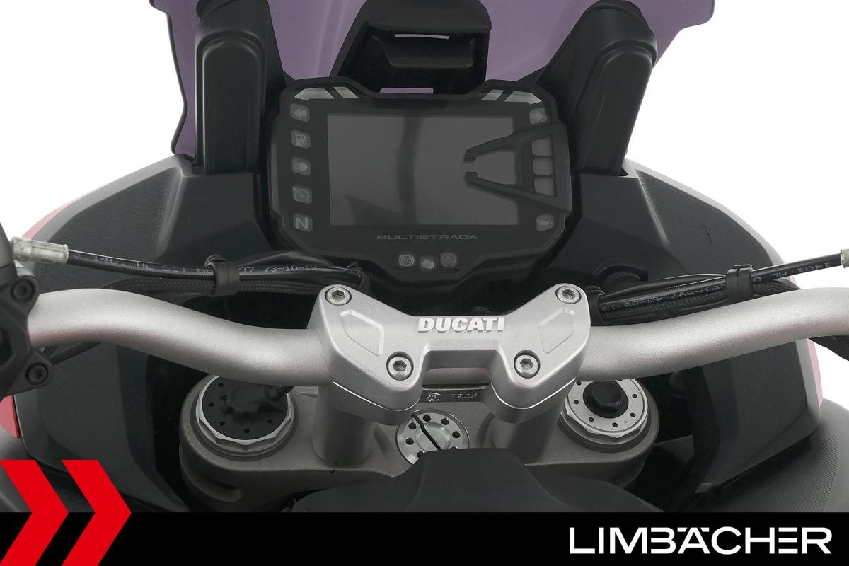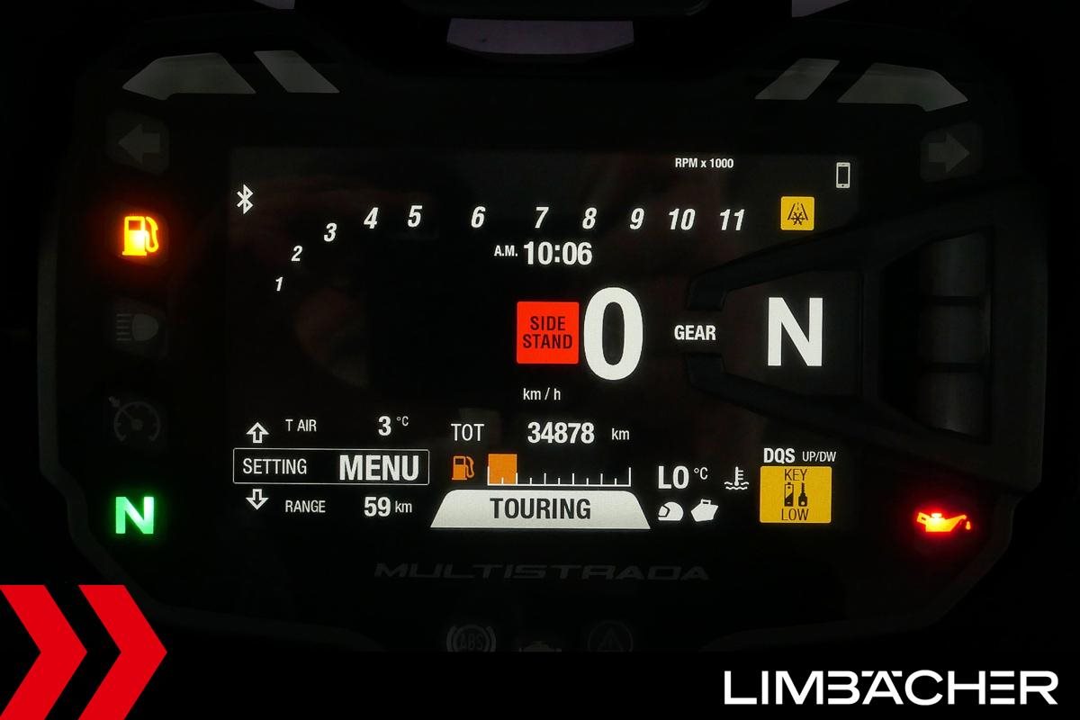 Eine Ducati Multistrada 1260 S in gepflegtem Zustand u.a. mit VTrec-Brems- und -Kupplungshebel sowie kurzem Kennzeichenhalter.