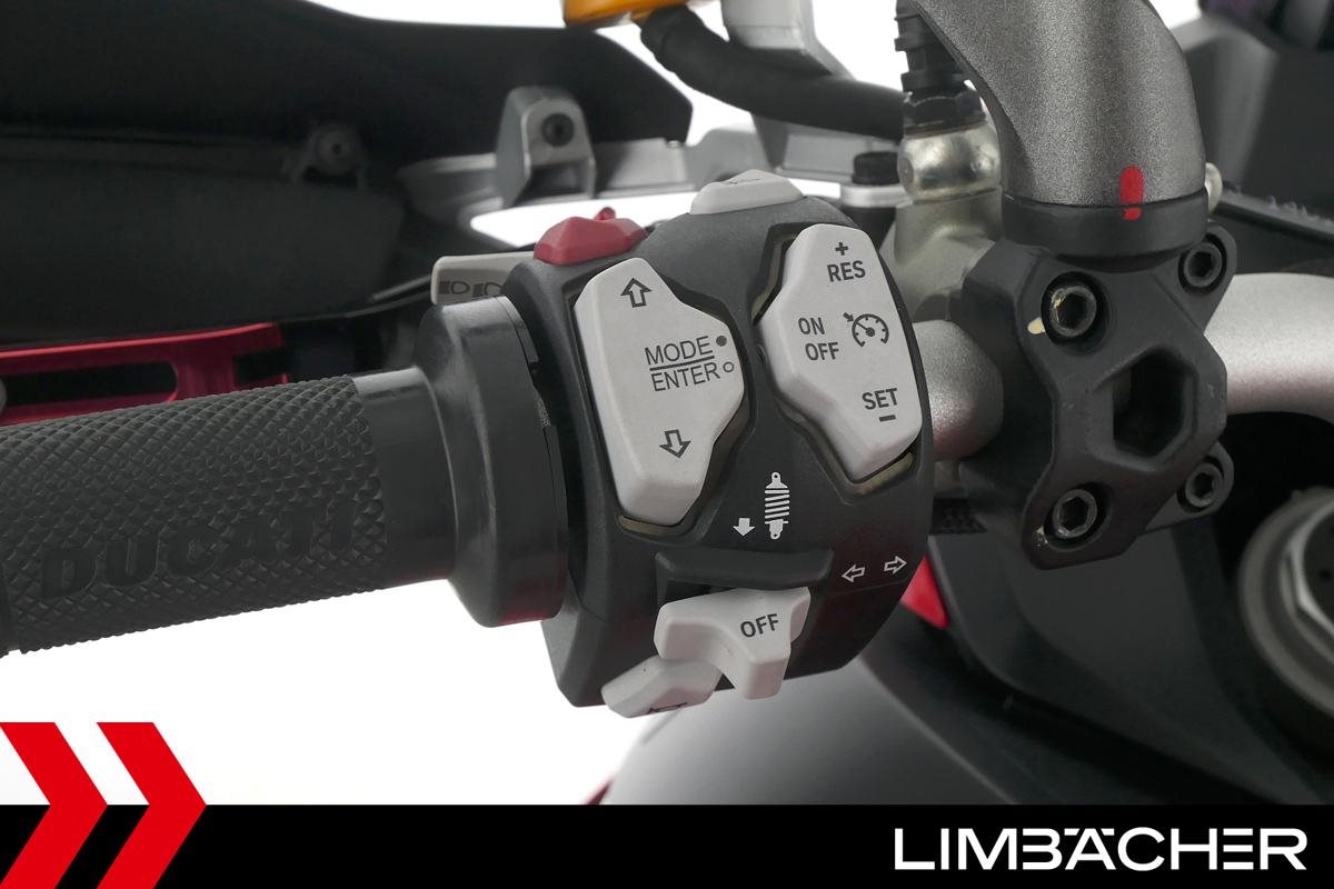 Eine Ducati Multistrada 1260 S in gepflegtem Zustand u.a. mit VTrec-Brems- und -Kupplungshebel sowie kurzem Kennzeichenhalter.