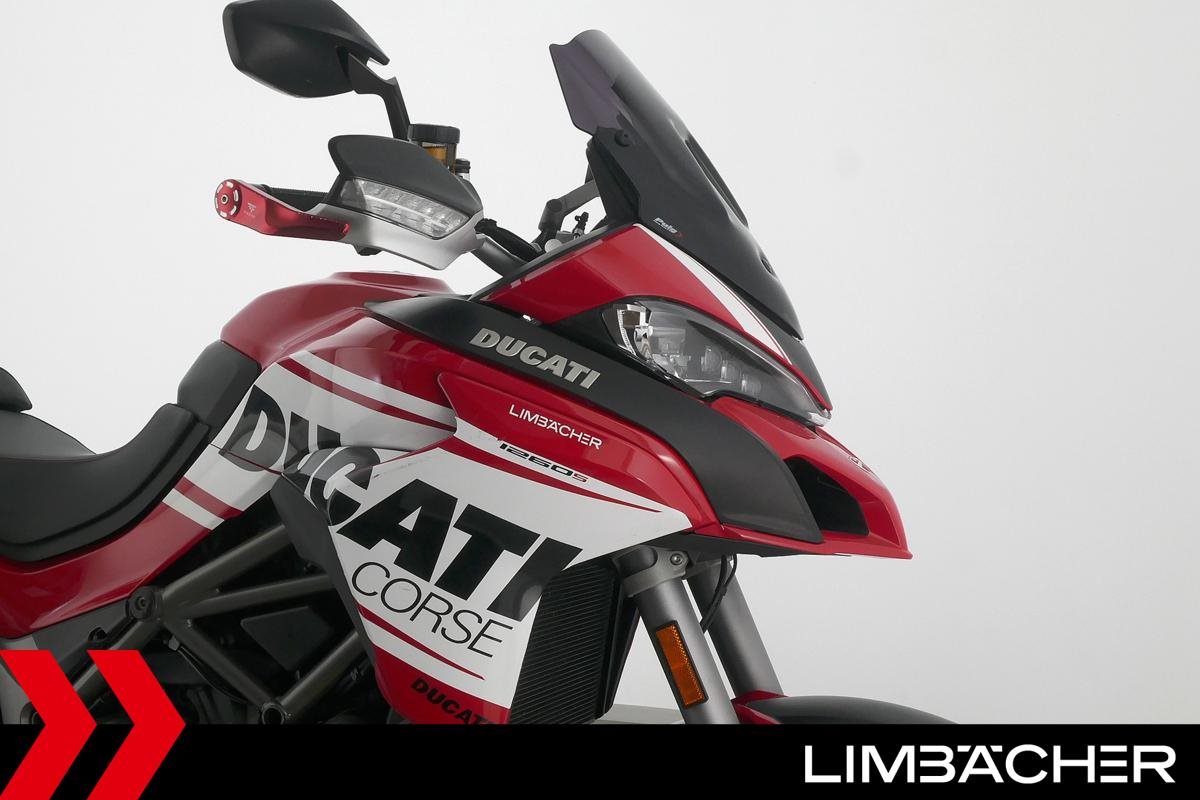 Eine Ducati Multistrada 1260 S in gepflegtem Zustand u.a. mit VTrec-Brems- und -Kupplungshebel sowie kurzem Kennzeichenhalter.