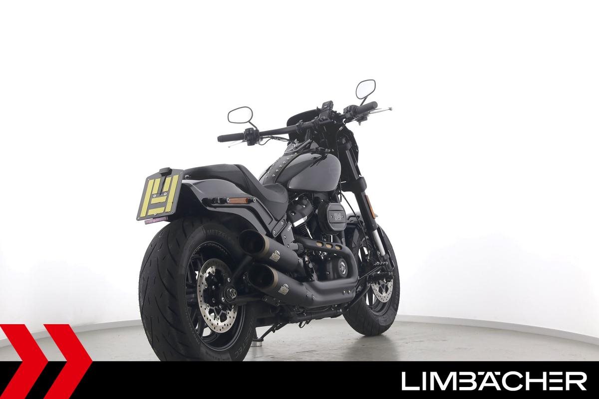 Eine Harley-Davidson Softail Fat Bob 114 FXFBS in sehr gepflegtem Zustand u.a. mit Jekill&Hyde-Klappenauspuff sowie kurzem Kennzeichenhalter.