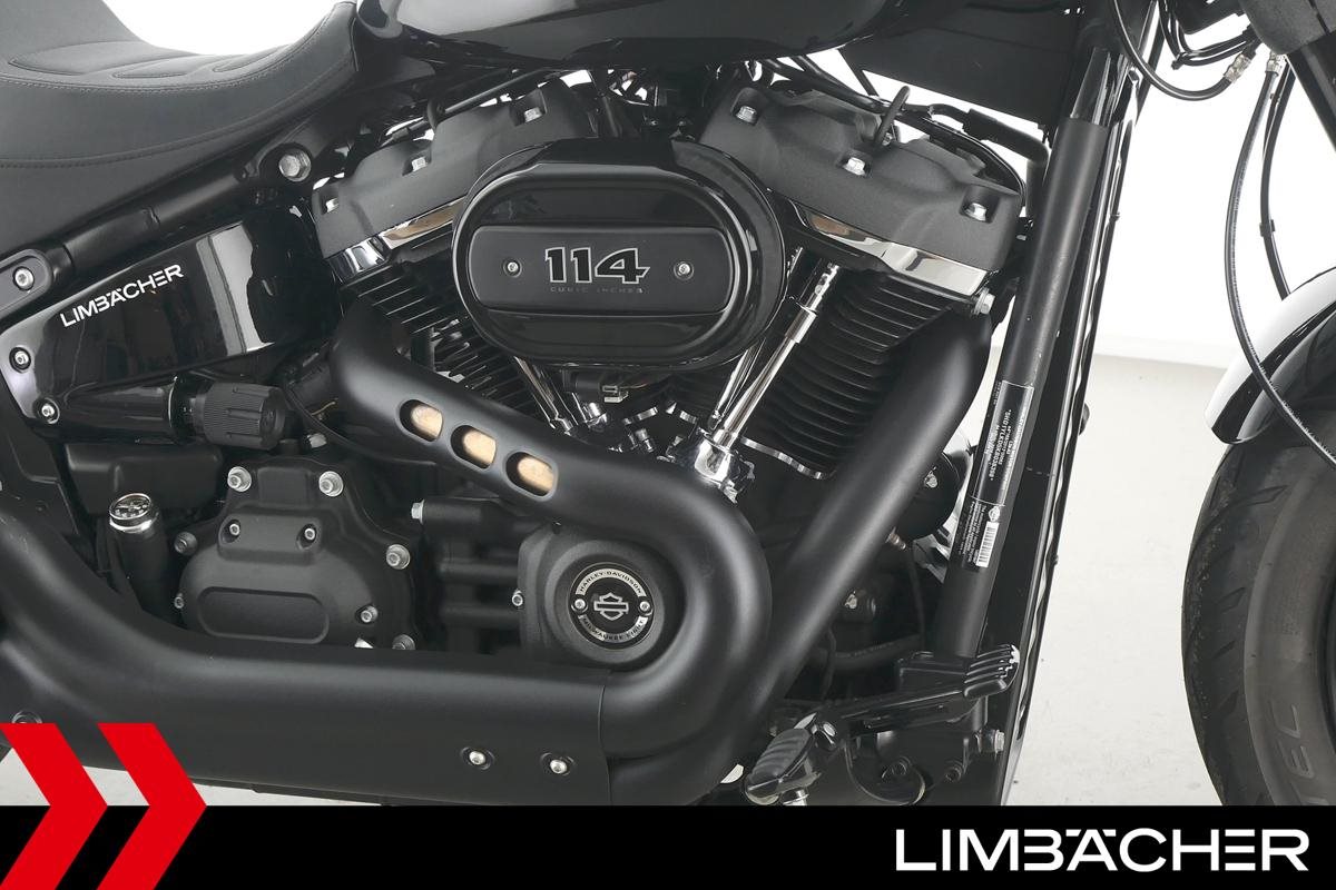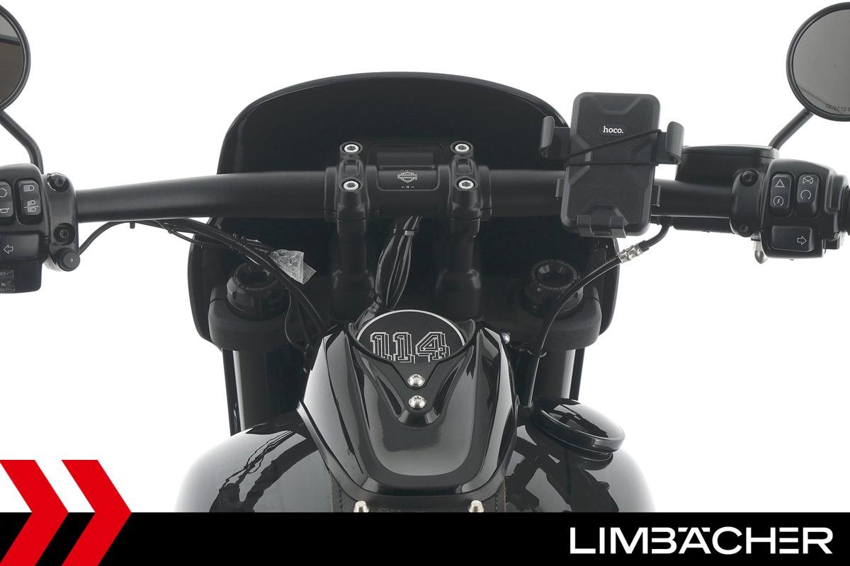 Eine Harley-Davidson Softail Fat Bob 114 FXFBS in sehr gepflegtem Zustand u.a. mit Jekill&Hyde-Klappenauspuff sowie kurzem Kennzeichenhalter.