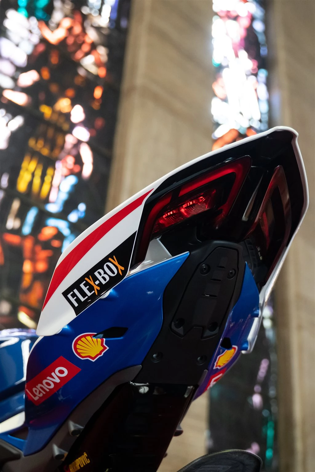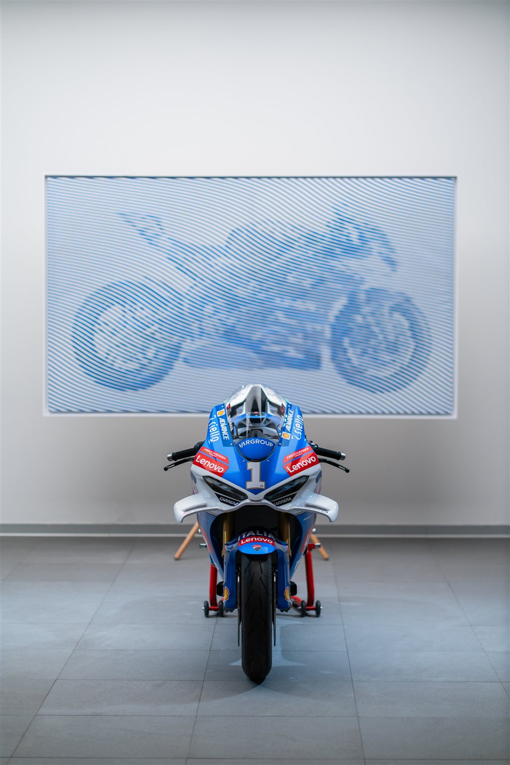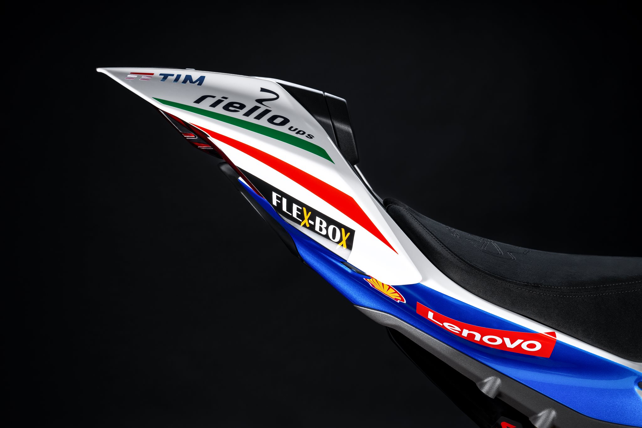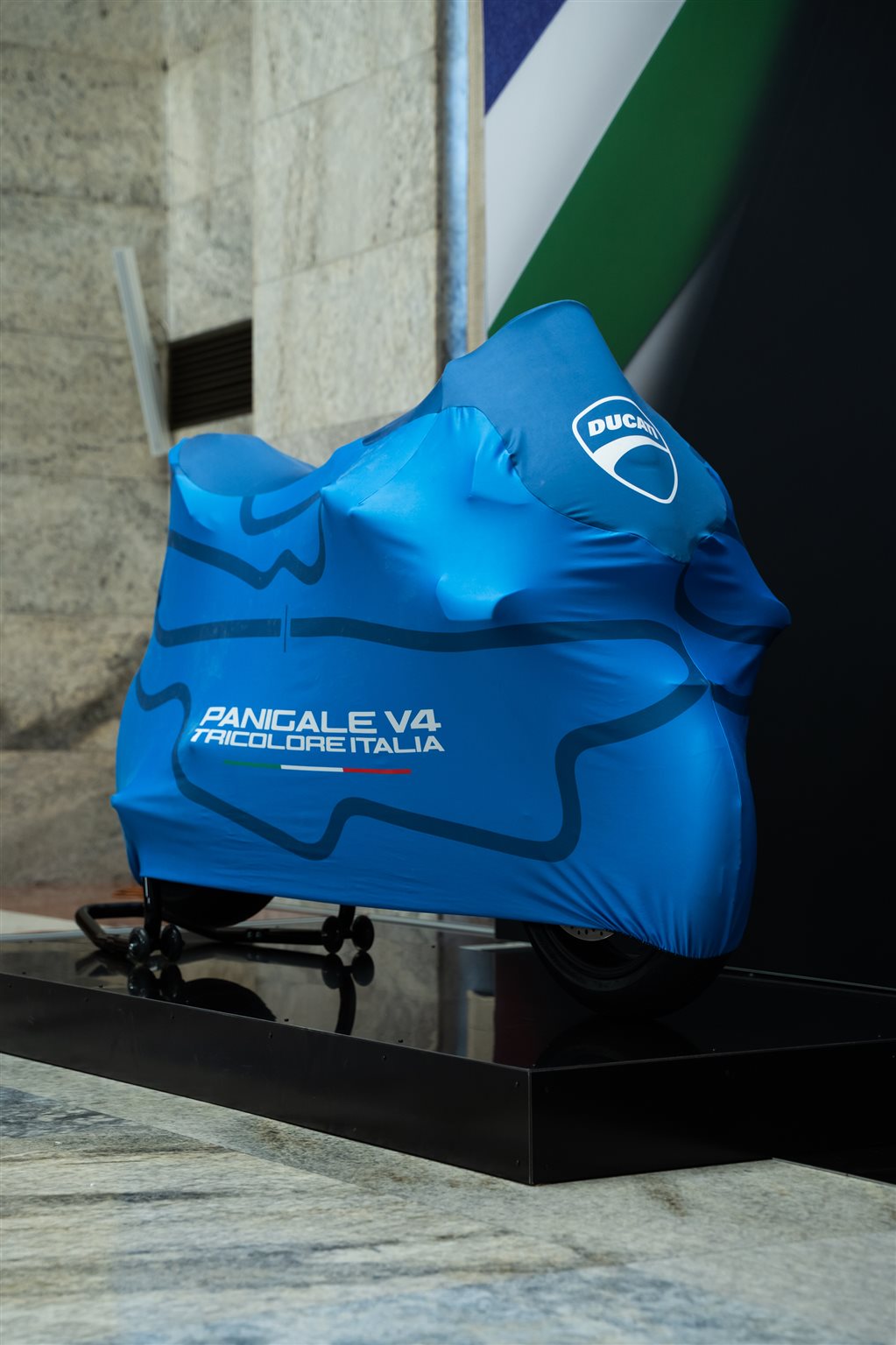Eine nummerierte und auf 163 Exemplare limitierte Sonderedition der neuen Panigale V4 S. Das Motorrad feiert mit einer speziellen Lackierung das Hellblau der italienischen Sportnationalmannschaft, die beim Grand Prix von Italien einen historischen Doppelsieg erzielte.