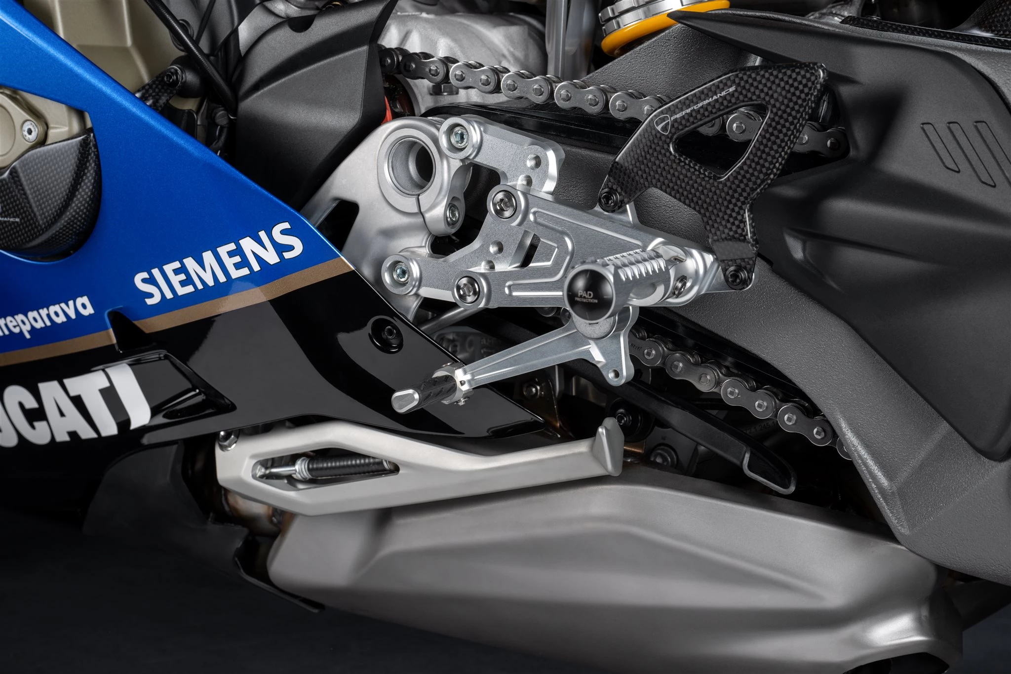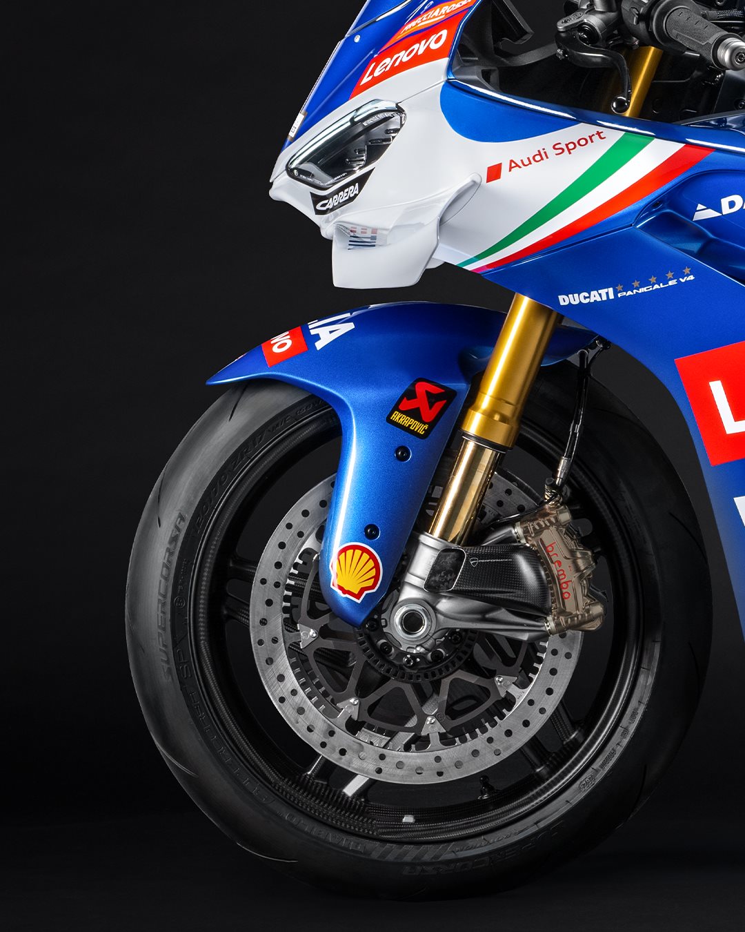 Eine spezielle Sammleredition, die italienische Sportlichkeit feiert. Nummerierte und limitierte Edition: 163 Exemplare basierend auf der neuen Panigale V4 S, signiert von Francesco Bagnaia, mit vielen Racing-Features und beeindruckender WorldSBK-Bremsanlage von Brembo. Dieses Motorrad feiert mit einer speziellen Lackierung das Hellblau der italienischen Nationalmannschaften, das auch Francesco Bagnaia und das Ducati Lenovo Team trugen, als sie in der Saison 2024 in Mugello triumphierten. Es ist in Racing-Ausführung mit Racing-Bremsanlage von Brembo und anderen exklusiven Features konfiguriert.