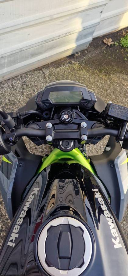 Scheibenbremsen vorne und hinten sorgen für eine beeindruckende Bremsleistung. Doppelkolben-Bremssättel greifen vorne an eine 290-mm-Scheibe und hinten an eine 220-mm-Scheibe. Das Scheibendesign trägt zum sportlichen Kawasaki-Look bei.