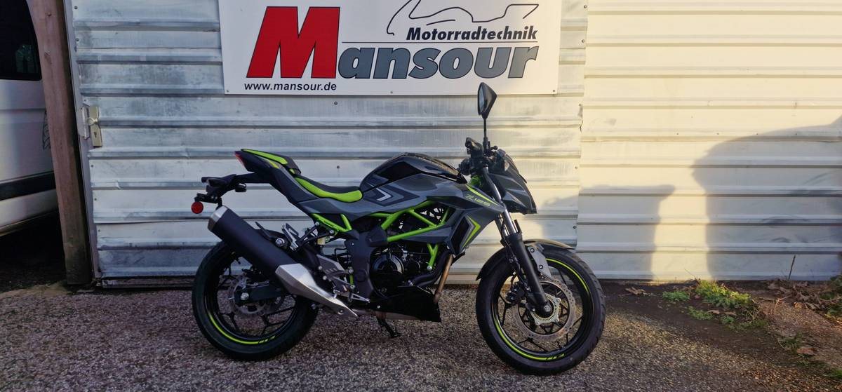 Mit Kawasakis einzigartiger Sugomi-Designphilosophie, die sofort ins Auge fällt, präsentiert sich das kleinste Mitglied der Z-Familie. Auffallen und ein starkes Naked-Bike-Statement setzen - genau dafür ist sie da. Der freiliegende Gitterrohrrahmen verbindet sich mit der minimalistischen, aggressiven Z-Verkleidung und lädt zu sportlicher Fahrweise ein. Der 15-PS-Motor (11 kW) ist sowohl einsteigerfreundlich als auch so sportlich, wie man es von Kawasaki erwartet. Die Z125 kann mit dem A1-Fušhrerschein oder mit dem Autofušhrerschein ab 25 Jahren (B196) gefahren werden und bietet ideale Voraussetzungen fušr Führerschein-Neulinge.