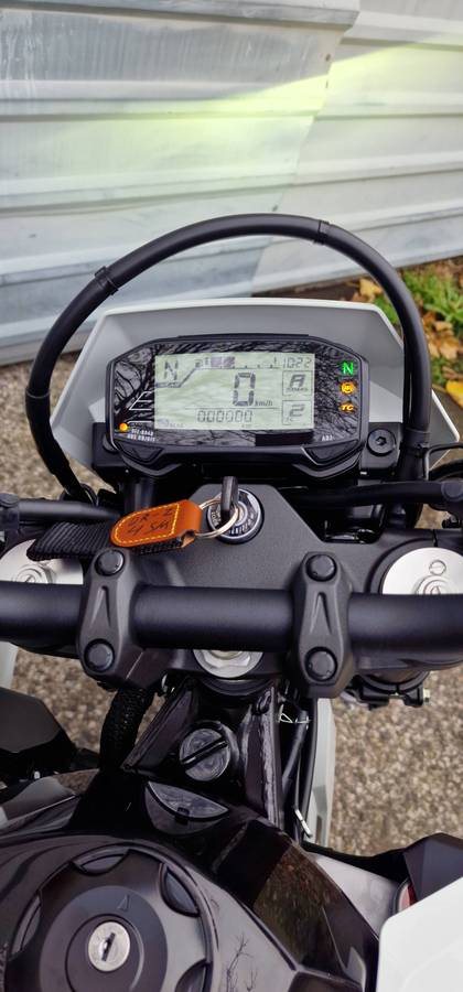 Eine Seltenheit in der Klasse bis 450 Kubik: Mit ihrem extrem günstigen Leistungsgewicht schöpft sie die Vorgaben der A2-Homologation voll aus. Damit auch Rookies echten Supermoto-Spaß genießen können.