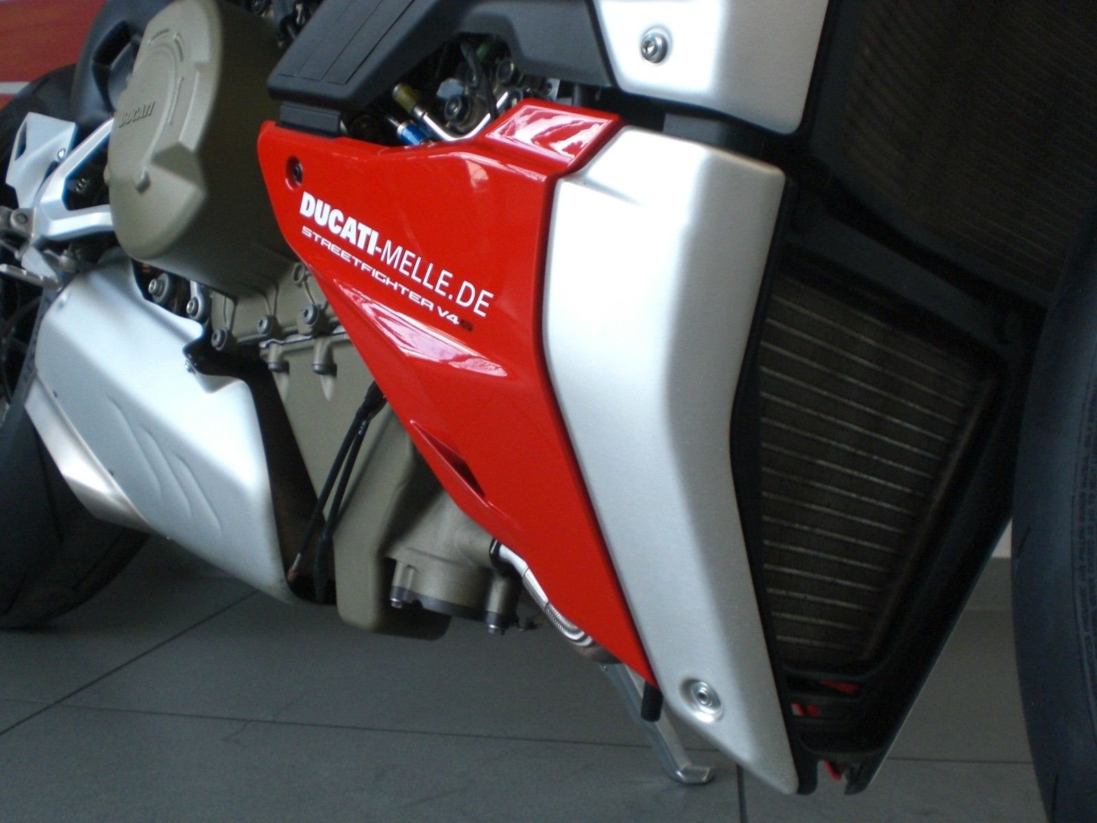 sehr gepflegter V4 S aus 1.Hand, unfallfrei, scheckheftgepflegt, 3 Riding Modes, Power Modes, Bosch Kurven ABS Evo, Traktionskontrolle(DTC Evo II), Wheelie Kontrolle(DWC Evo), Slide Kontrolle(DSC), Quickshifter up/down (DQS Evo II), Ducati Power Launch (DPL) gute Bereifung, individuell einstellbares elektronisches Öhlins Fahrwerk(Gabel, Federbein hinten, Lenkungsdämpfer), Stahlflexleitungen rundum, vielfach einstellbare Handhebel an Radialpumpen, Hinterradabdeckung, leichte Marchesini Schmiedefelgen für ein perfektes Handling, Brembo Radial Monoblock Bremsanlage vorn, LED Rücklicht, kurzer Heckumbau von EvoTech mit LED Blinkern, LED Scheinwerfer, LED Blinker vorne, Knee Pads von Performance, Tankpad von Performance, Monoposto Heck von Performance, Tankring von SW-MoTech, 178kg trocken, 199kg fahrfertig, 16 Liter Tankvolumen, 124NM Drehmoment, 845mm Sitzhöhe, Desmo-Service nur noch alle 24.000km,
