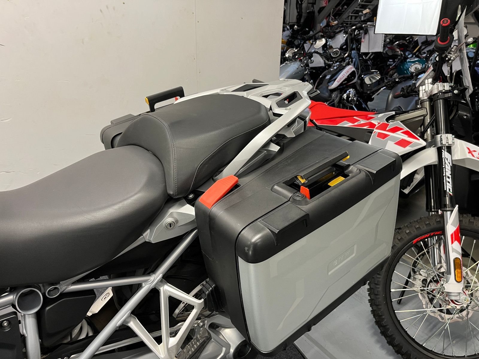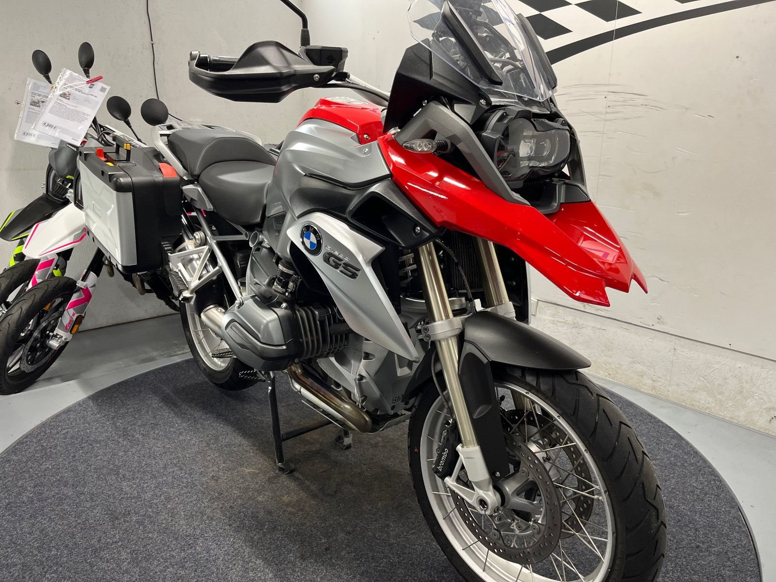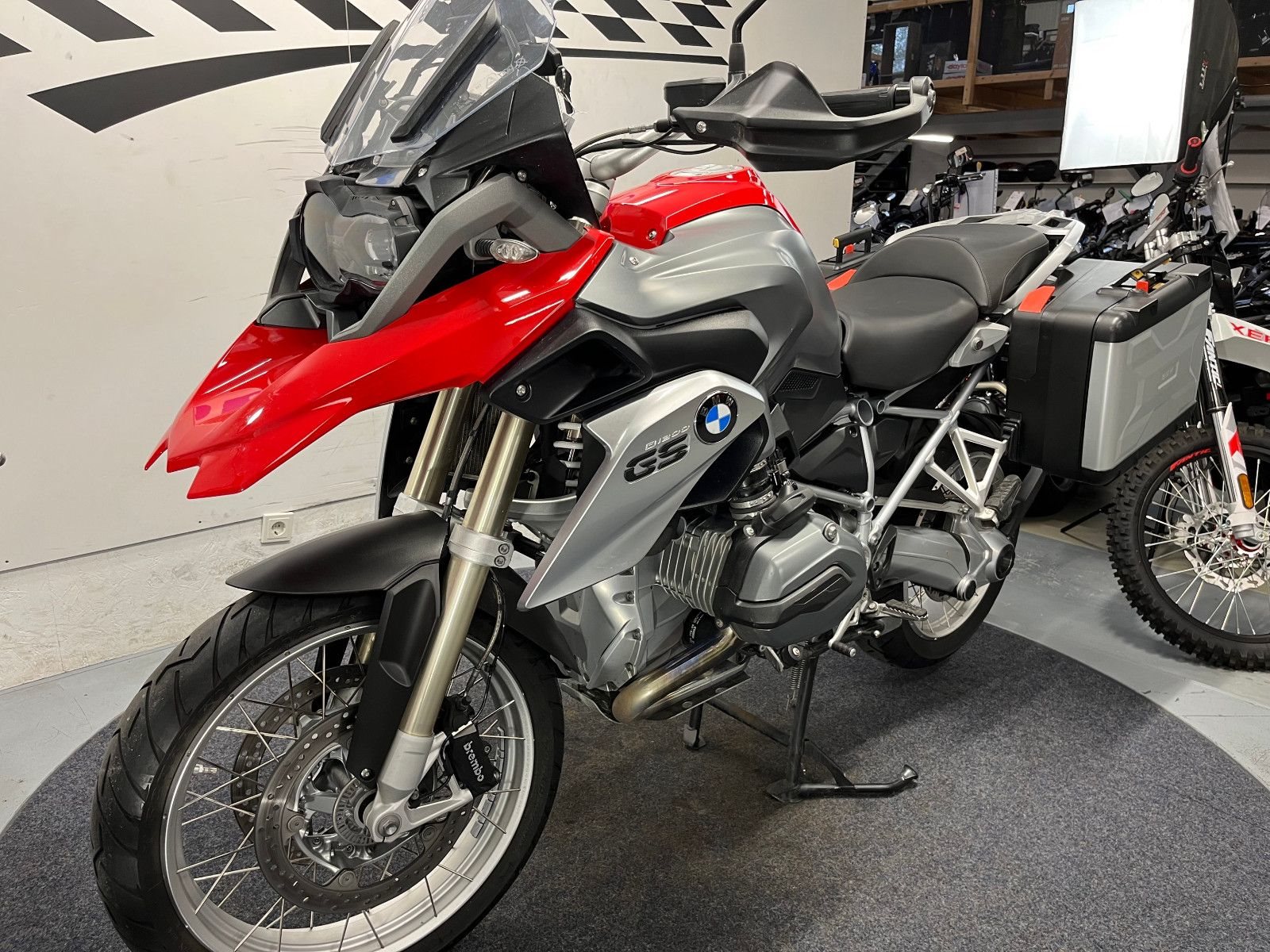 - Die BMW R-1200 GS ist in einem gepflegten Zustand.