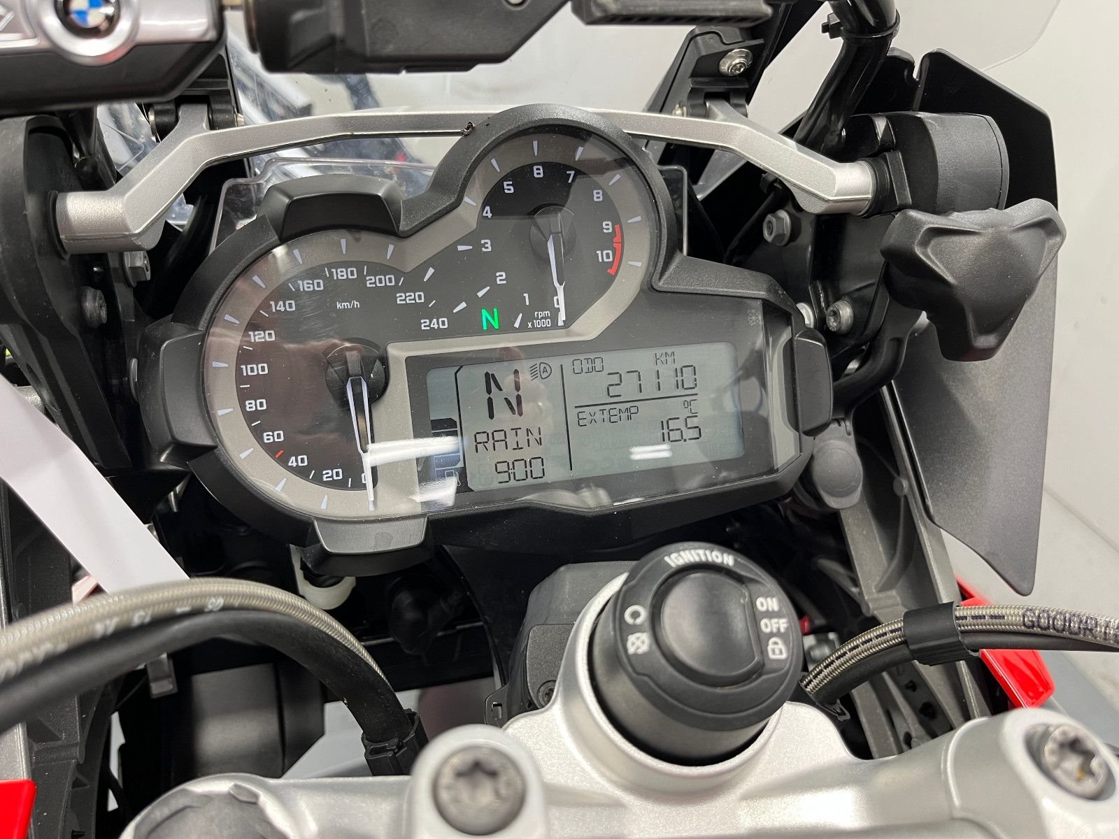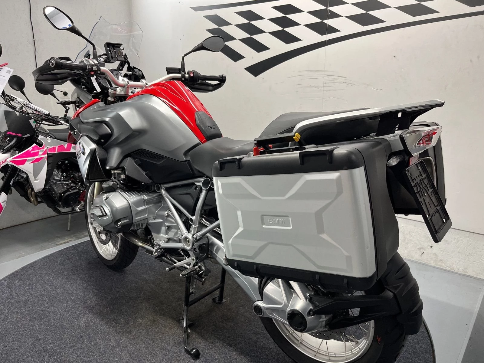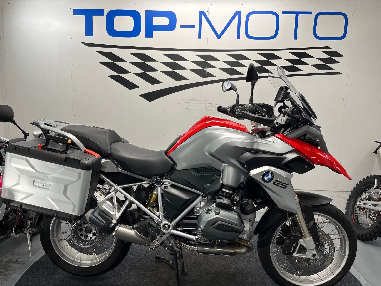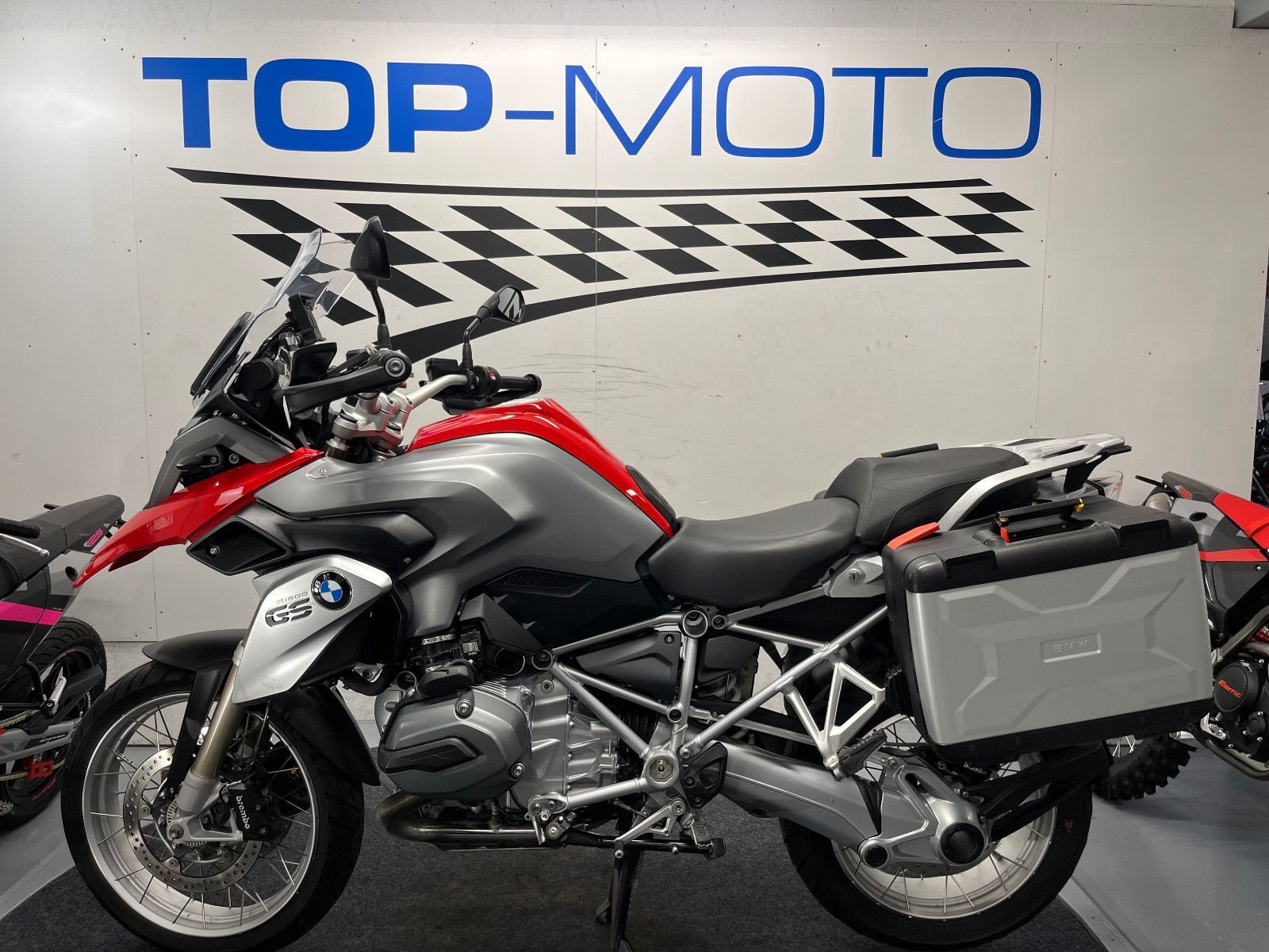 - Die BMW R-1200 GS ist in einem gepflegten Zustand.
